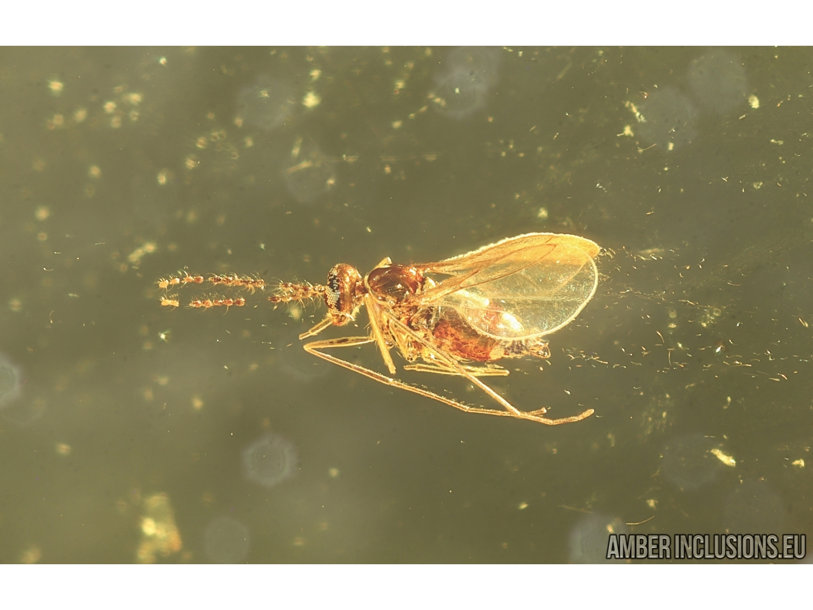 Baltic amber stone with fossil inclusion, trapped 34-56 million years ago -Gall Midge, Cecidomyiidae.