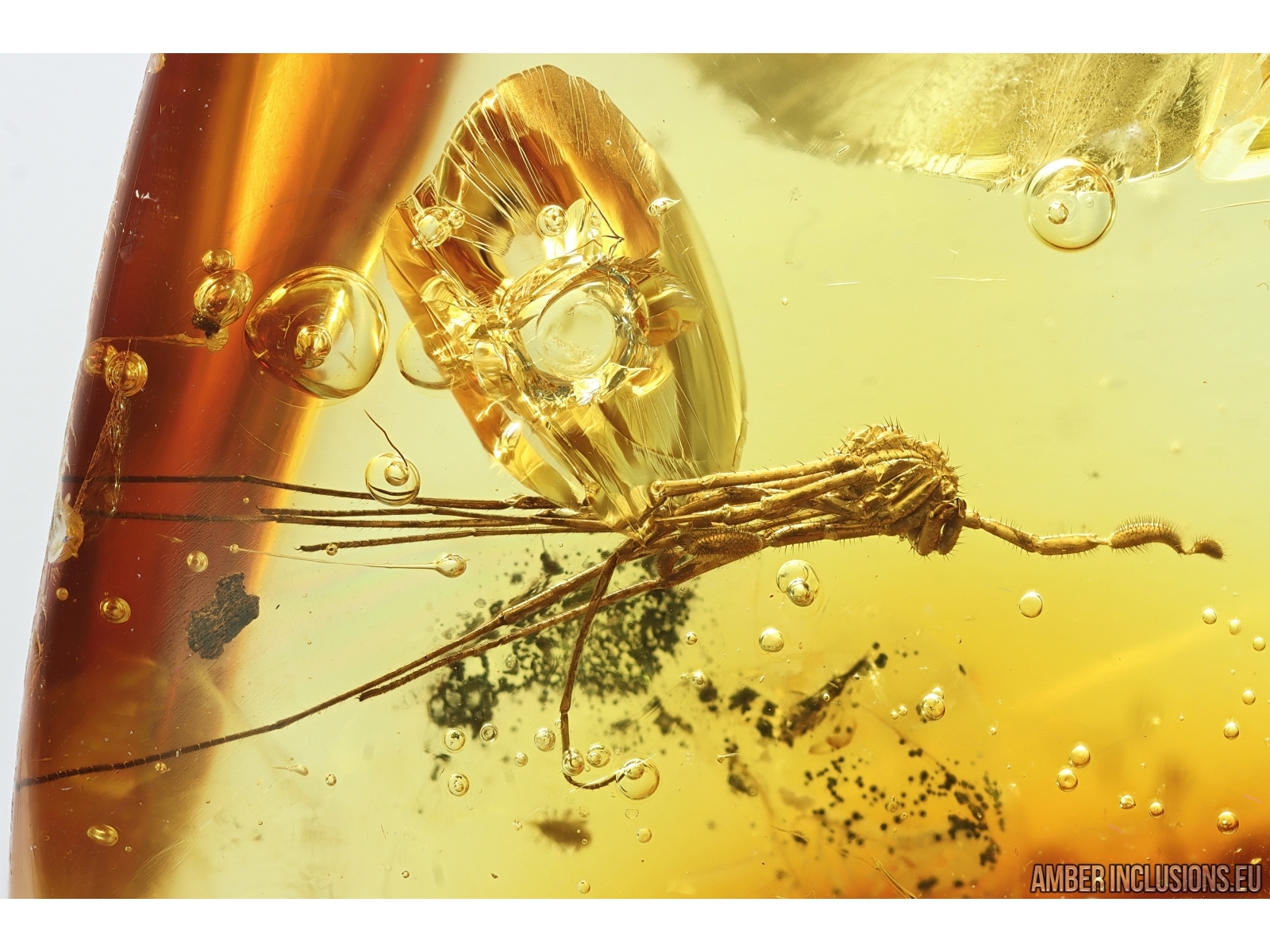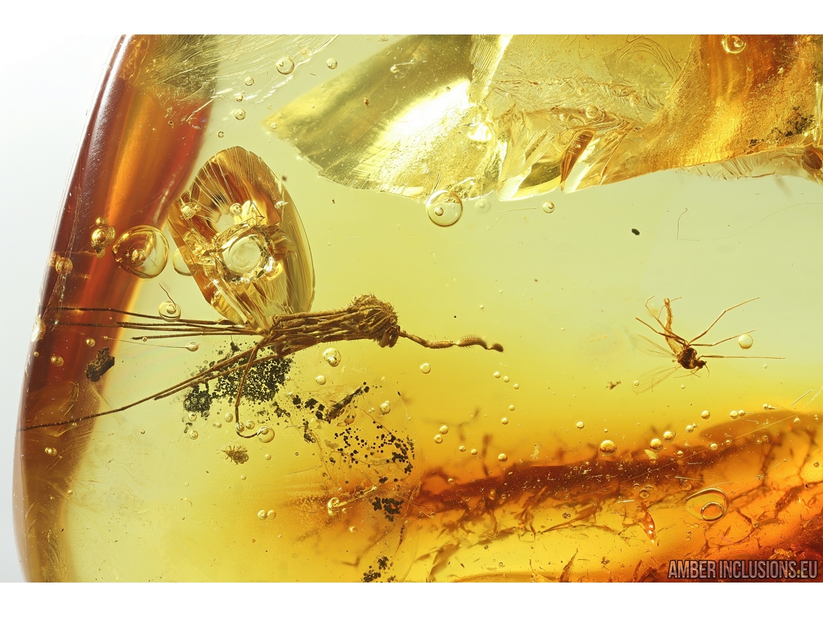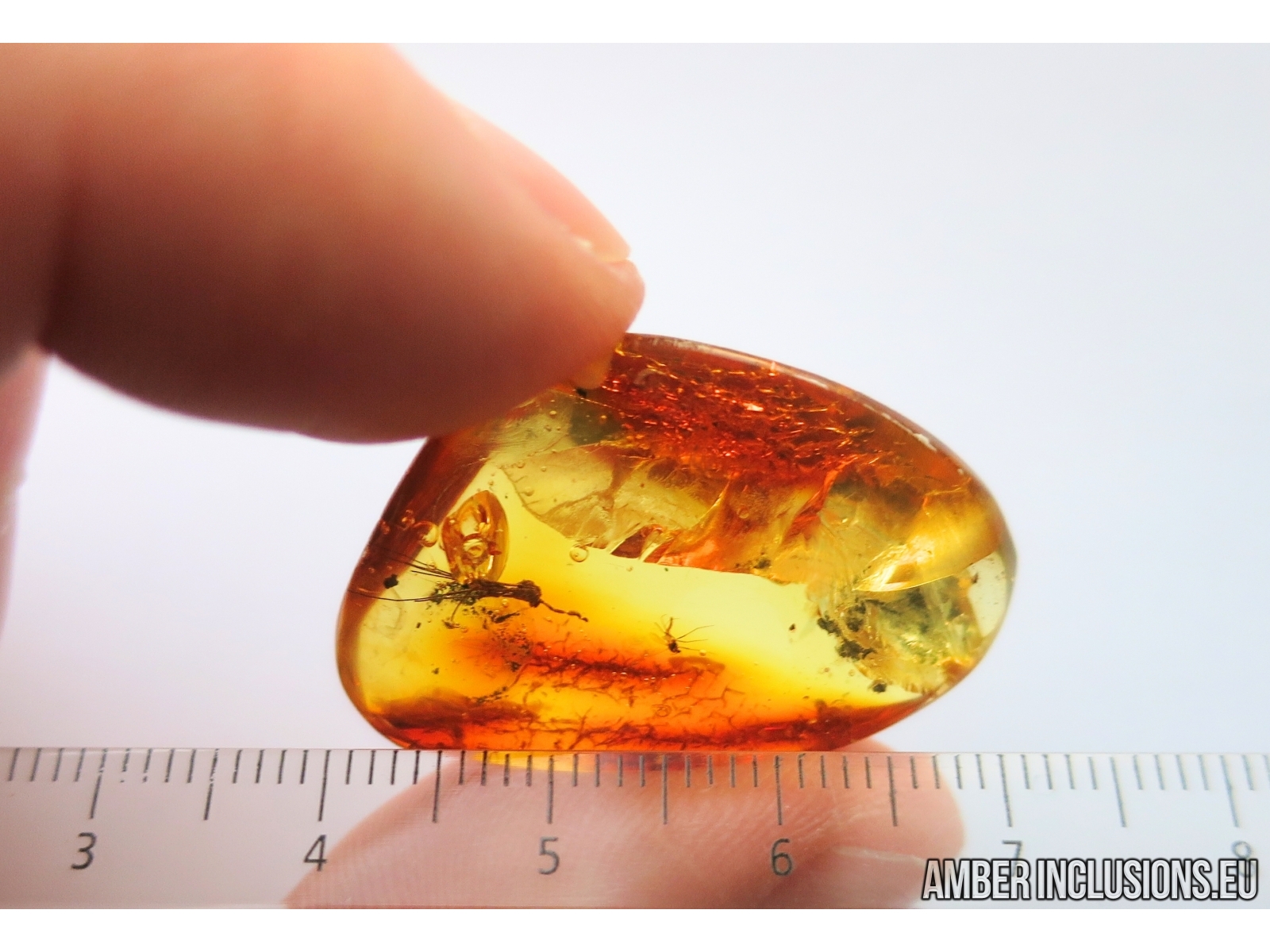 Ukrainian Rovno amber stone with fossil inclusion, trapped 34-56 million years ago - Harvestman Opiliones.