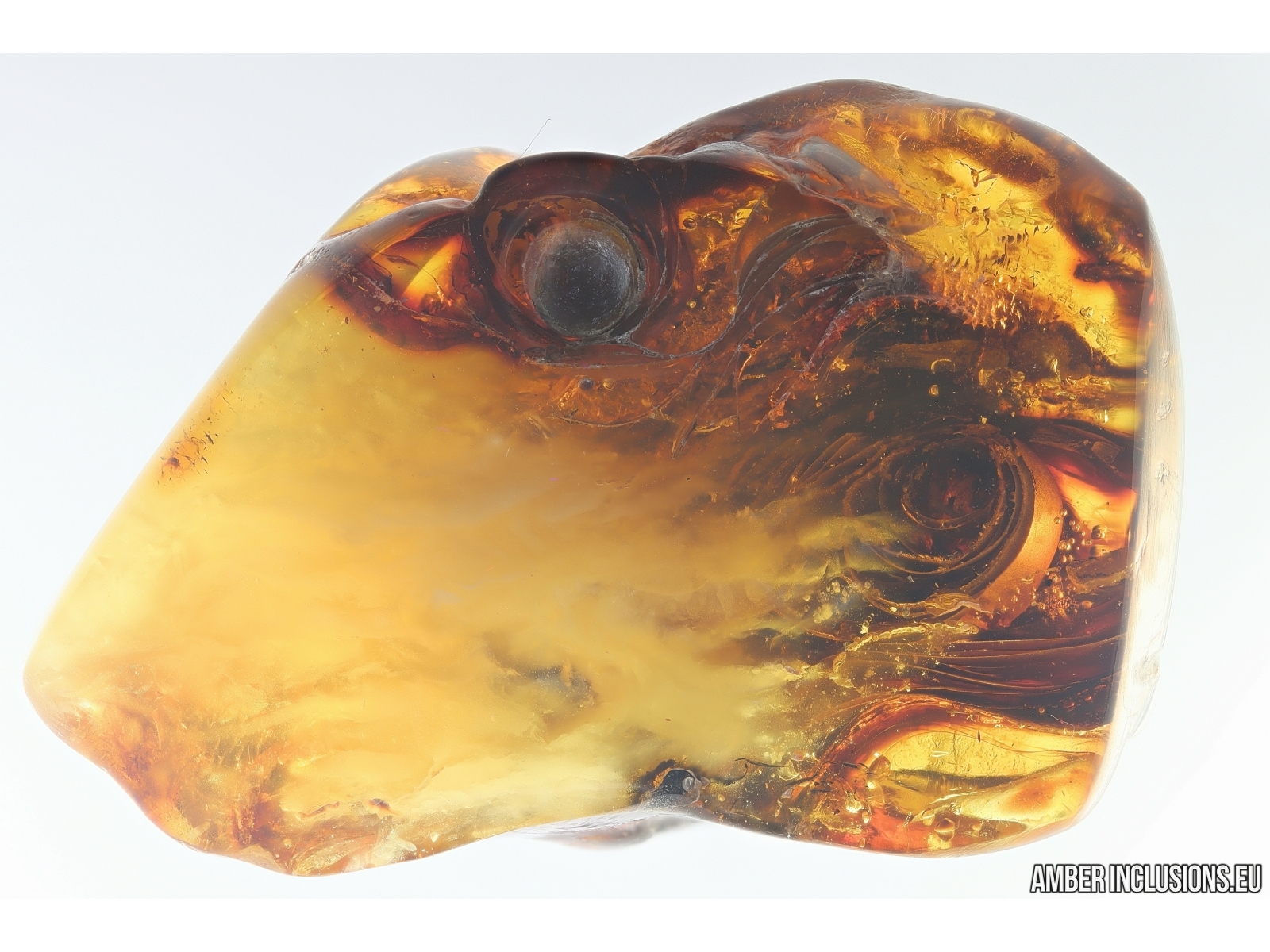 Ukrainian Rovno amber stone with fossil inclusion, trapped 34-56 million years ago.
