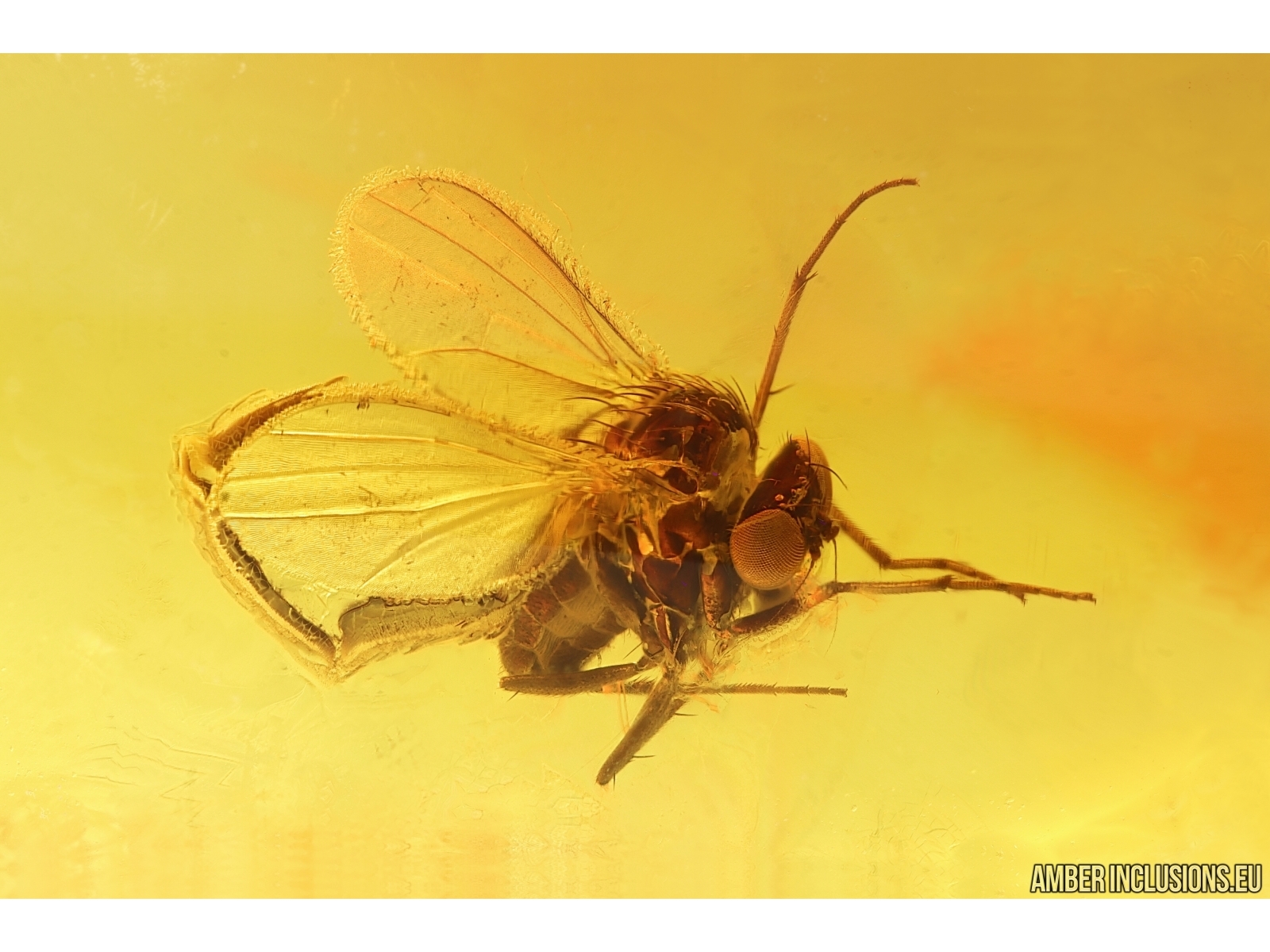Baltic amber stone with fossil inclusion, trapped 34-56 million years ago - Long-legged fly Dolichopodidae.