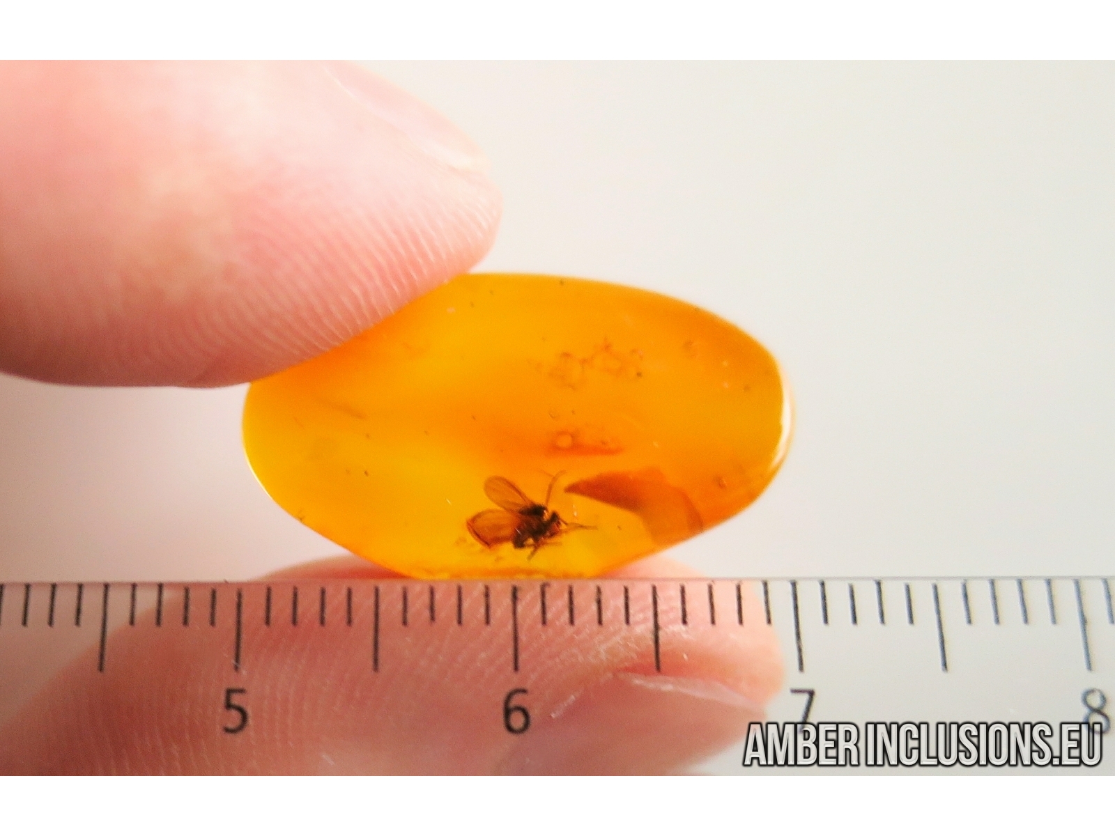It weighs 0.8 g. Measurements of stone 22x13x5mm, length of fly ~3.2mm.