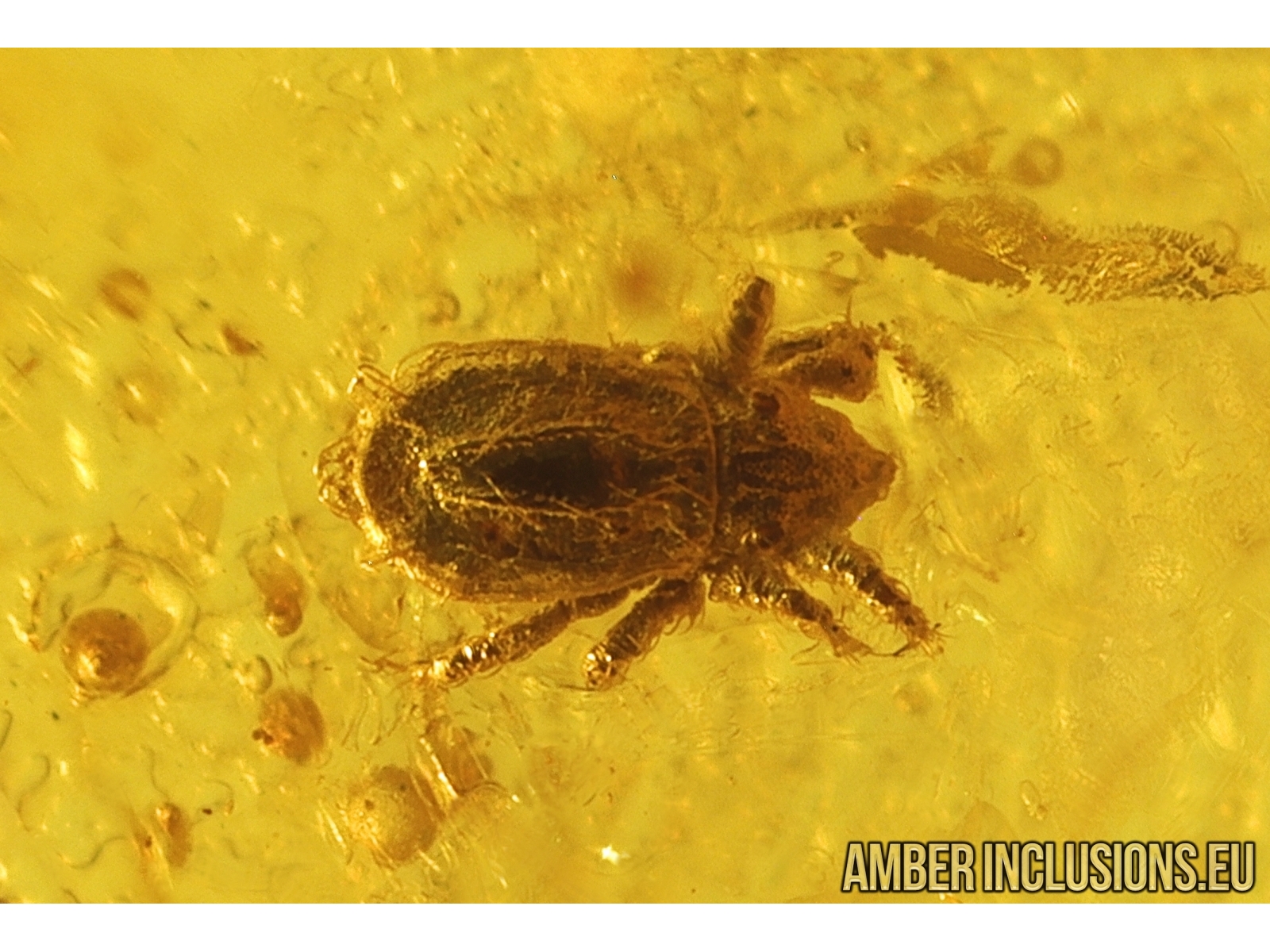 Baltic amber stone with fossil inclusion, trapped 34-56 million years ago - Mite Acari.