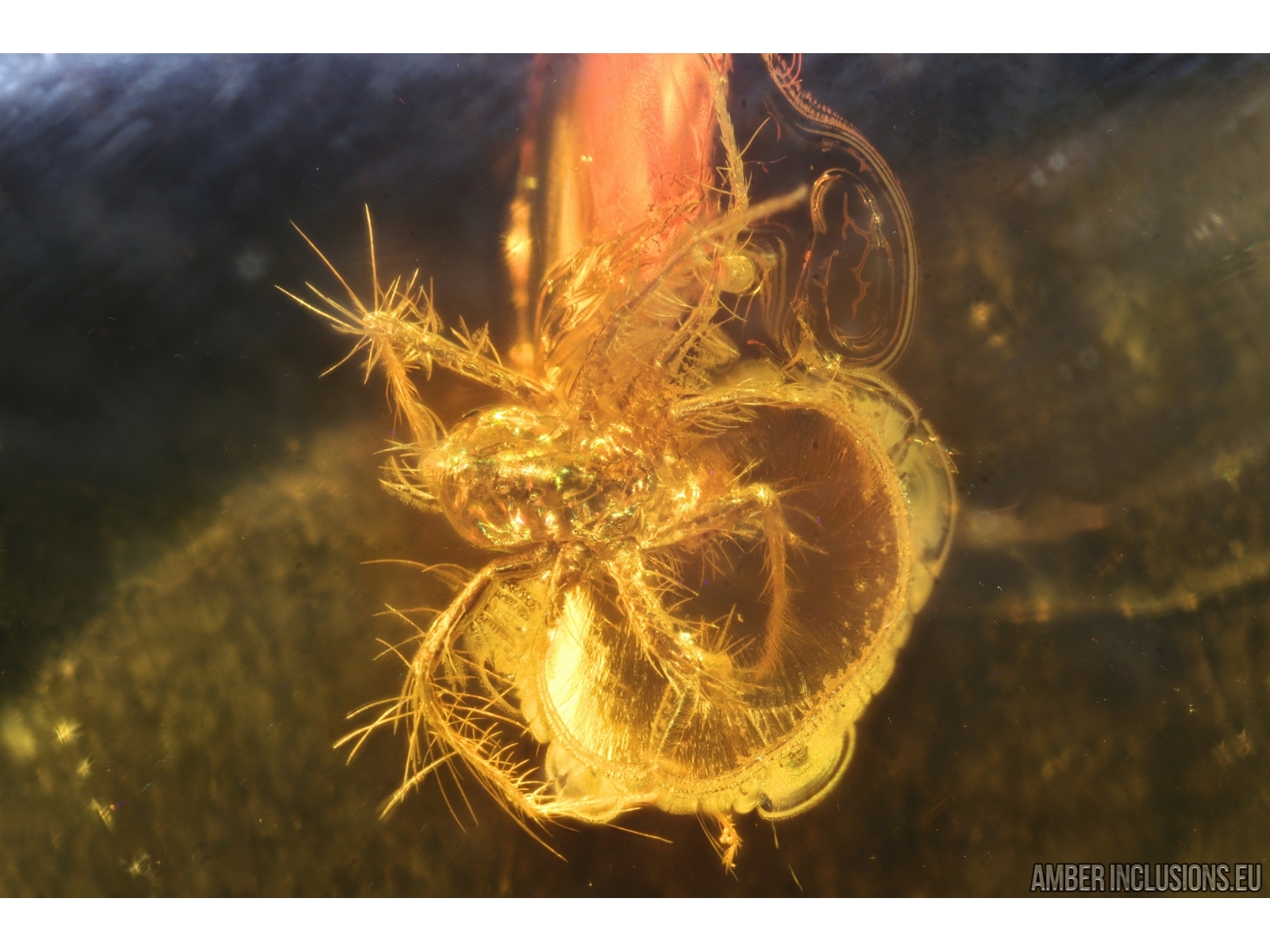 Baltic amber stone with fossil inclusion, trapped 34-56 million years ago - Mite Acari.