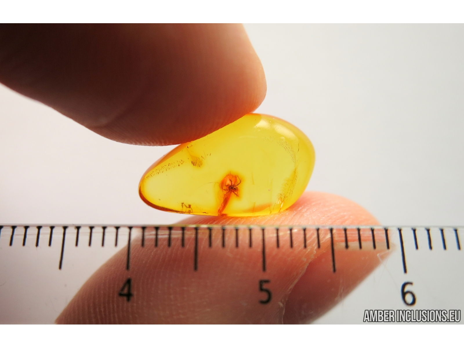 It weighs 0.3 g. Measurements of stone 16x9x3mm, length of mite ~1.2mm.