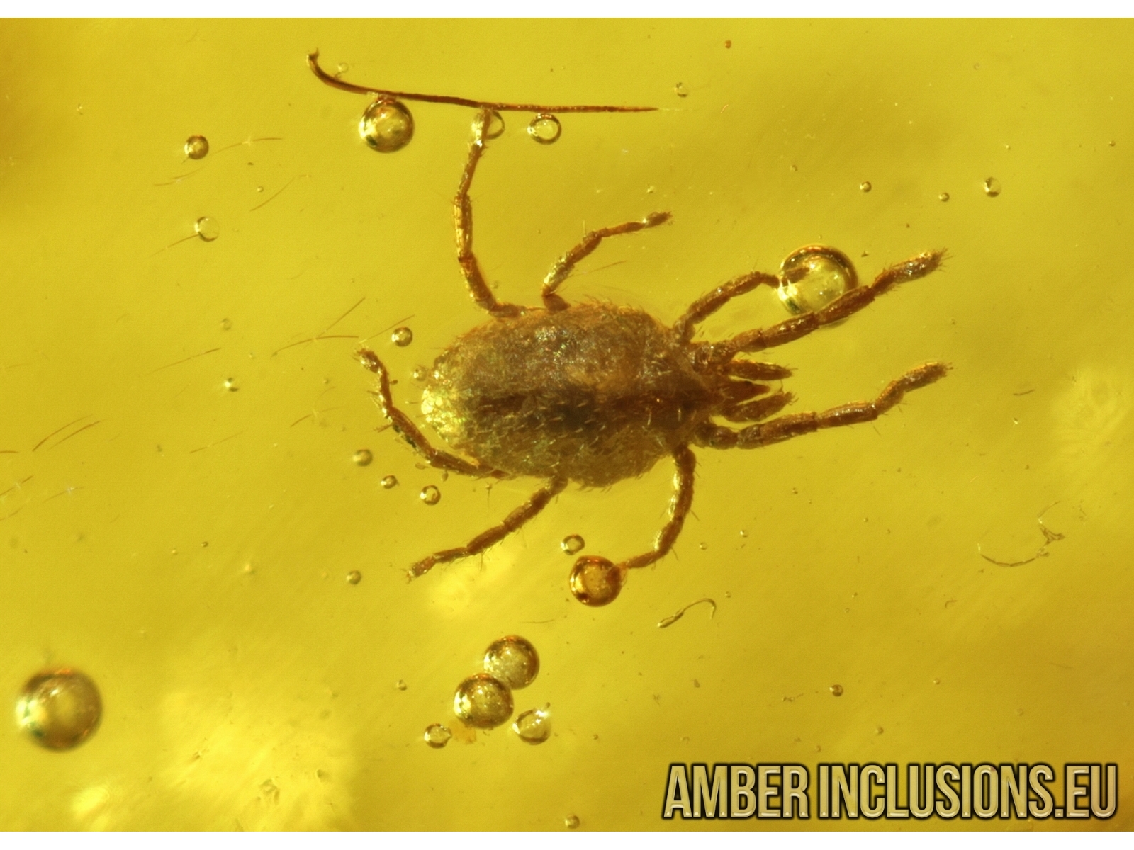 Ukrainian, Rovno amber stone with fossil insects - Mite and Aphid.