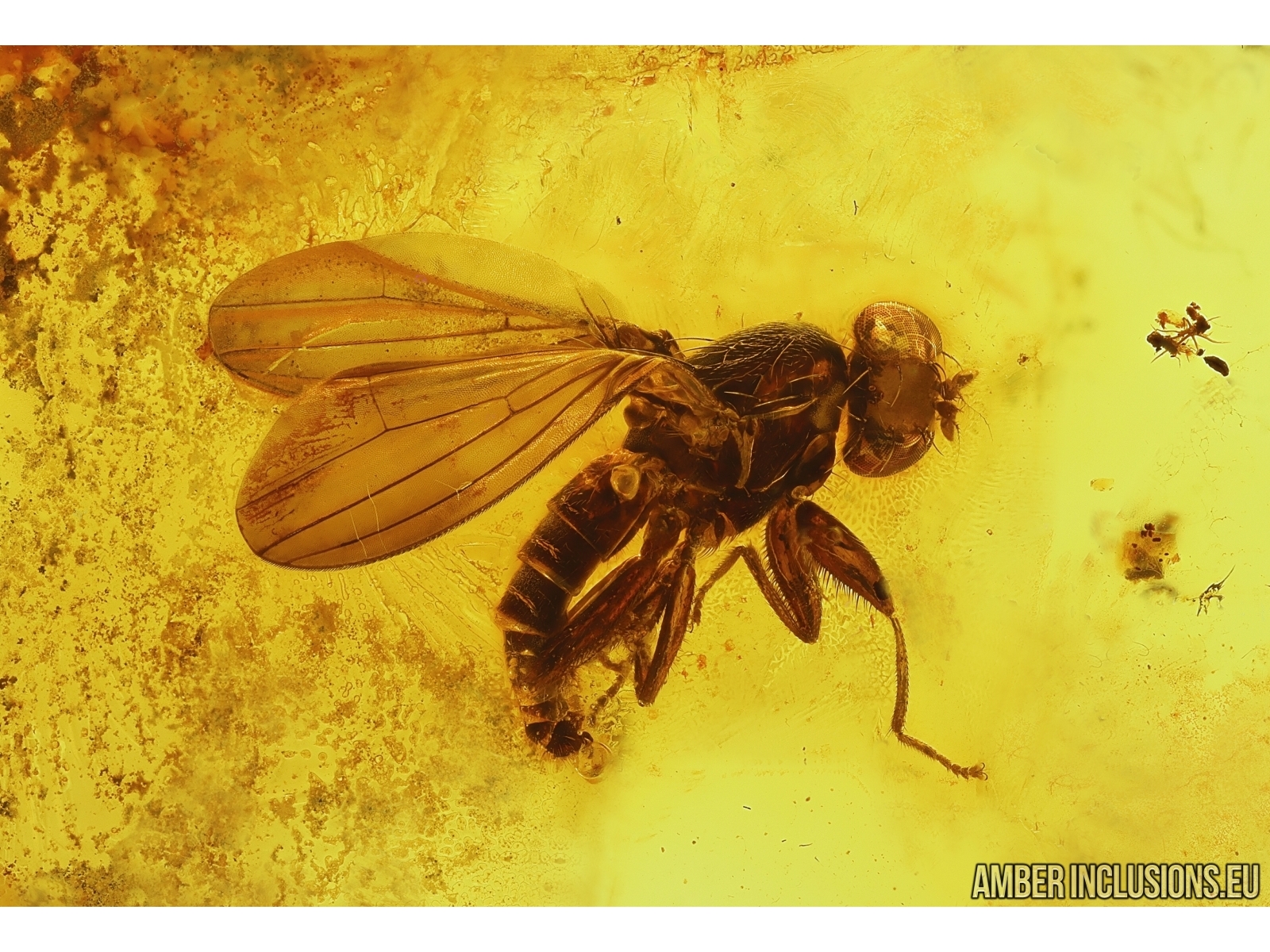 Baltic amber stone with fossil inclusion - Nice Muscoid fly Acalyptratae.