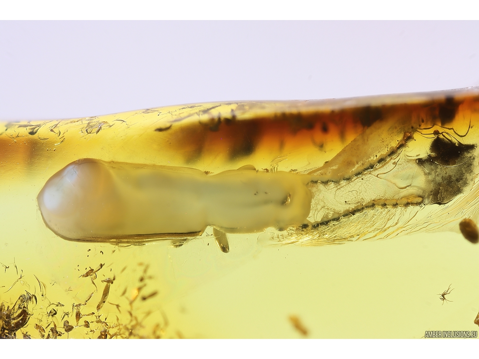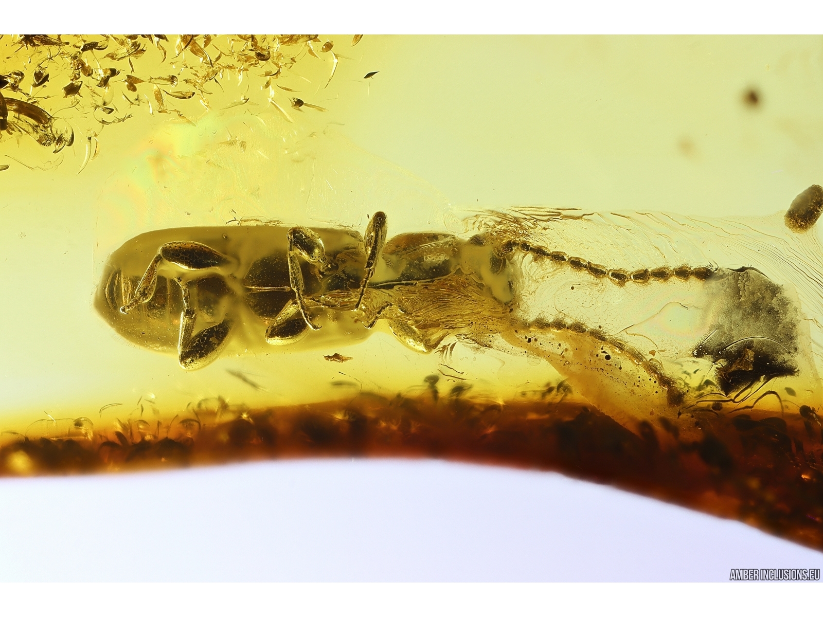 Baltic amber stone with fossil inclusion, trapped 34-56 million years ago -Nice Rare Parasitic flat bark Beetle Passandridae Passanda probably nov. sp.!