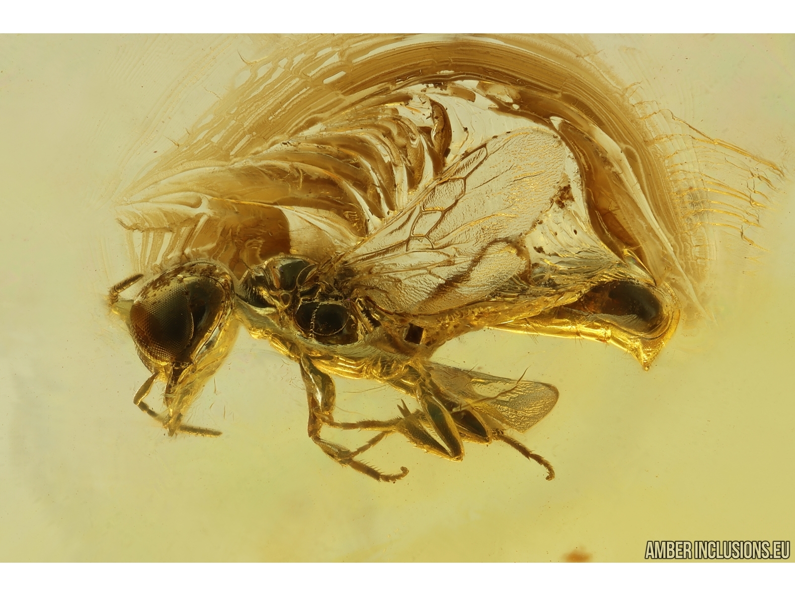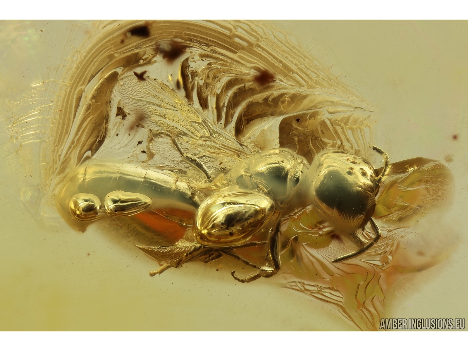 It weighs 3.7 g. Measurements of stone 37x22x8mm, length of wasp ~3.7mm.