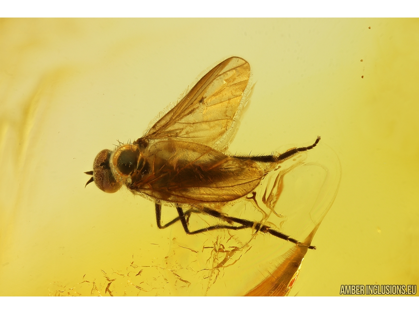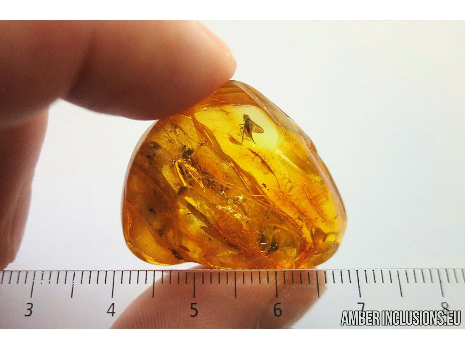 Baltic amber stone with fossil inclusion, trapped 34-56 million years ago - Snipe Fly, Rhagionidae.