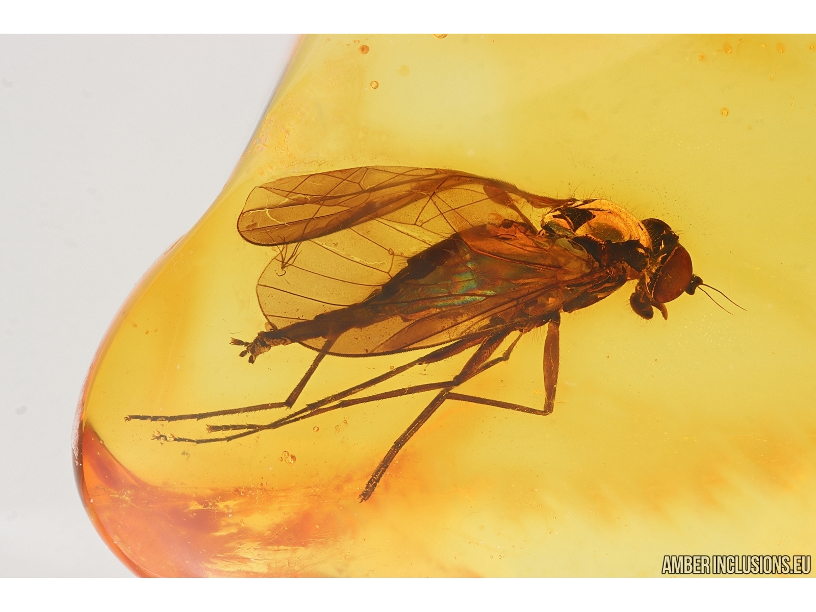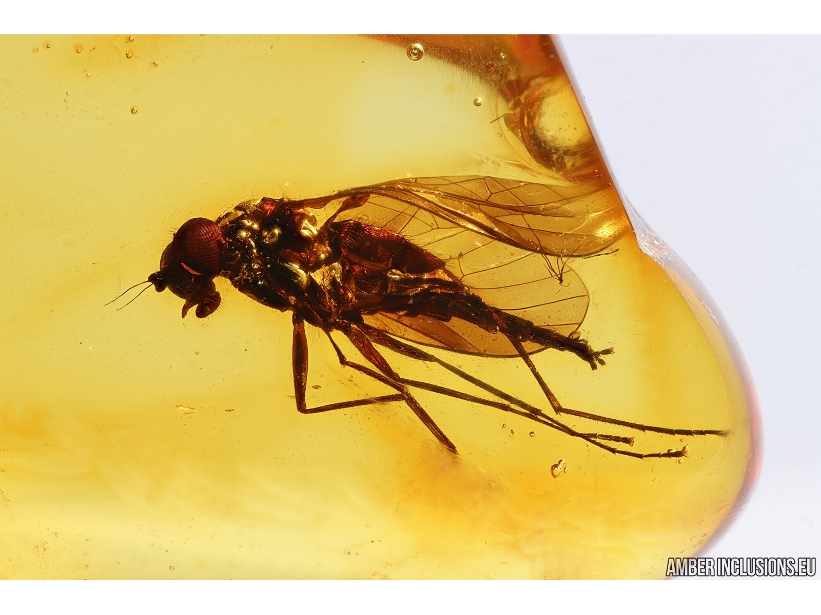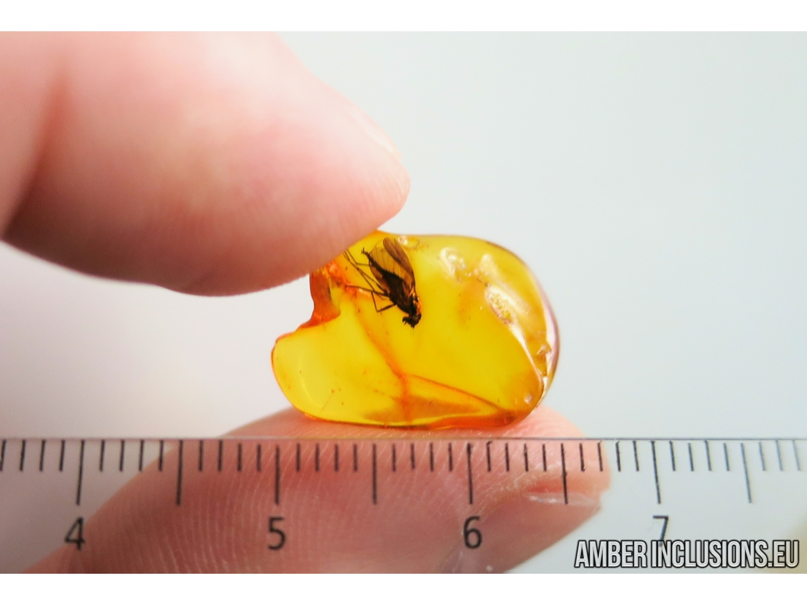 Baltic amber stone with fossil inclusion, trapped 34-56 million years ago - Snipe Fly, Rhagionidae.