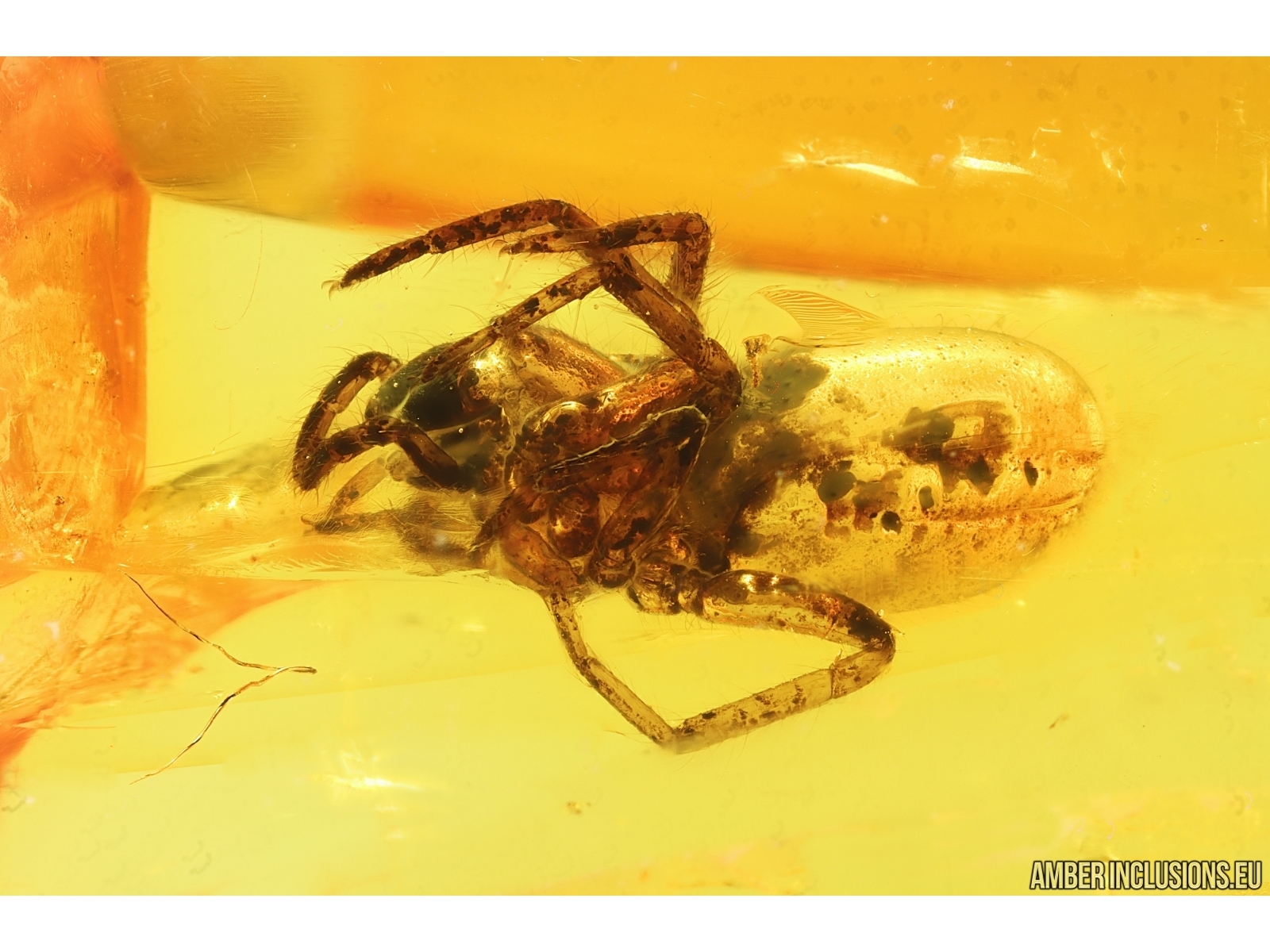 Baltic amber stone with fossil inclusion, trapped 34-56 million years ago - Spider Araneae