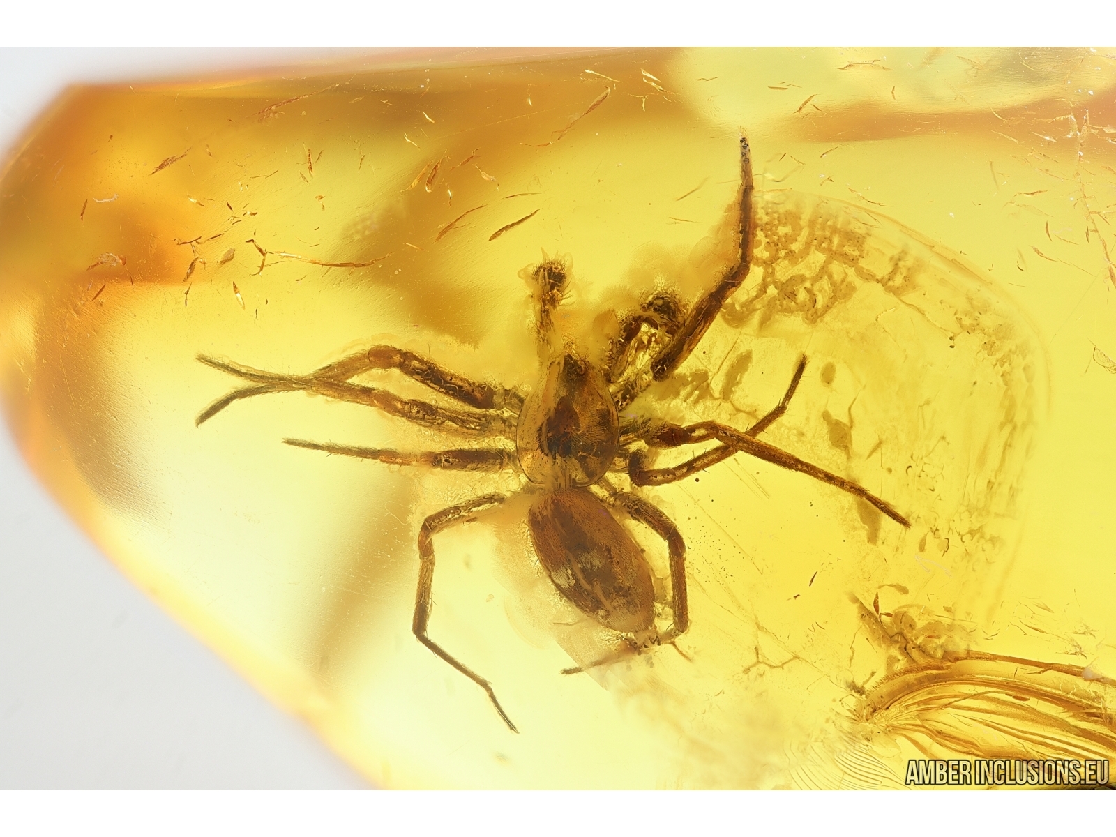 Ukrainian Rovno amber stone with fossil inclusion, trapped 34-56 million years ago - Spider Araneae.