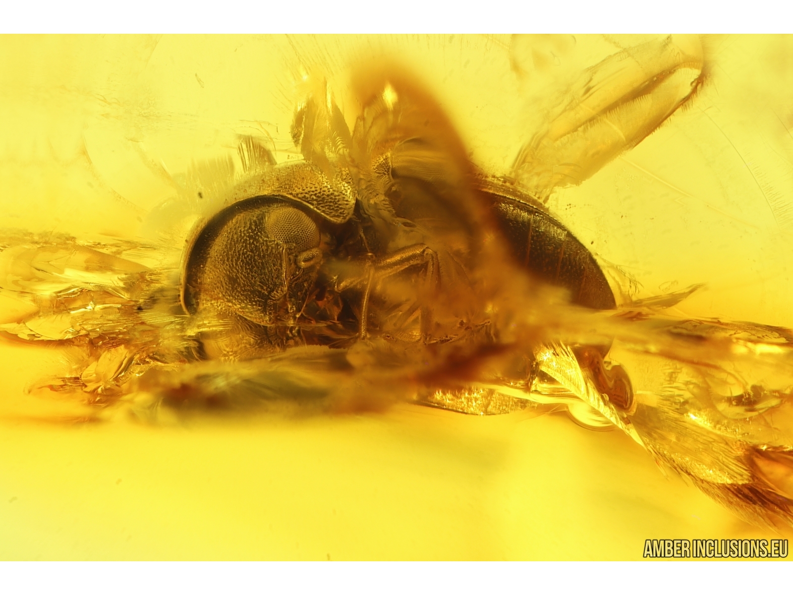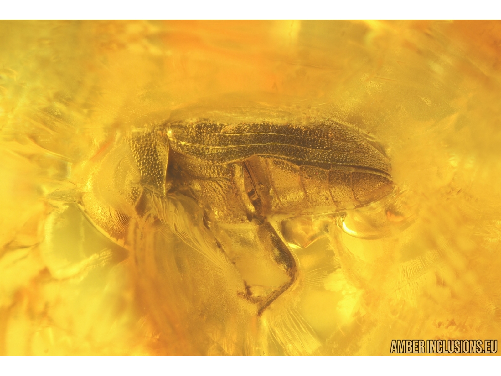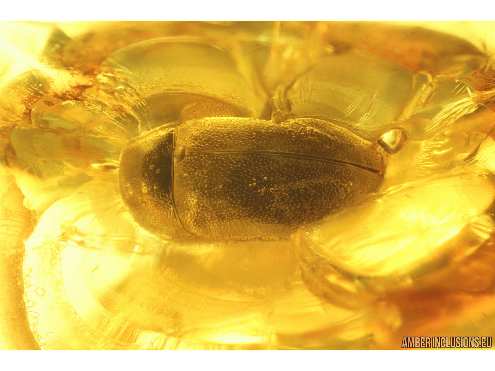 Baltic amber stone with fossil inclusion, trapped 34-56 million years ago -Spider Beetle, Ptinidae.