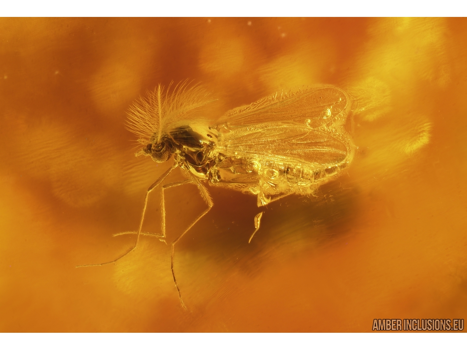 Baltic amber stone with fossil inclusion, trapped 34-56 million years ago - True midge, Chironomidae.