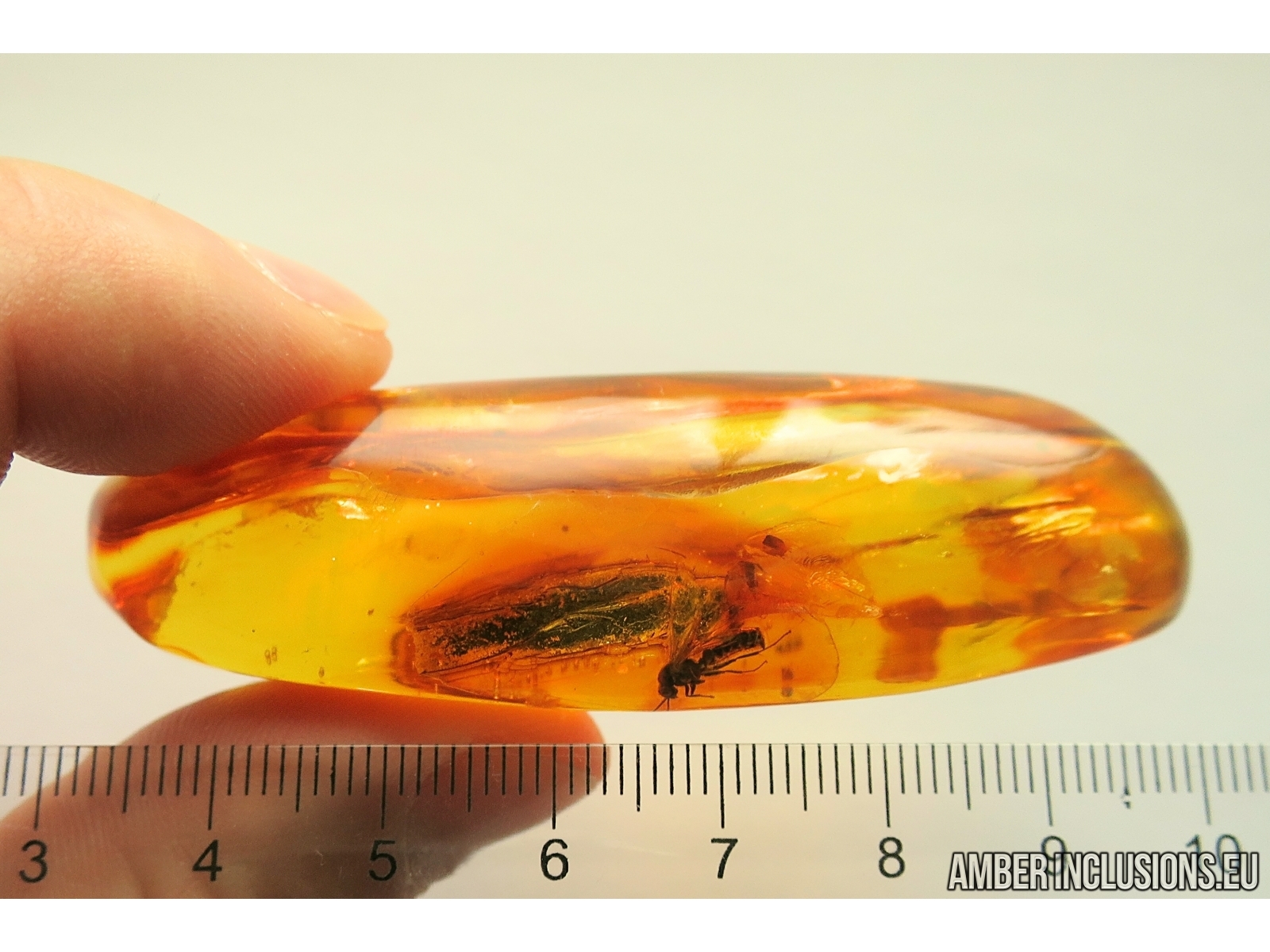It weighs 21 g. Measurements of stone 72x22x20mm, length of ant body ~7.5mm, max ~10m.