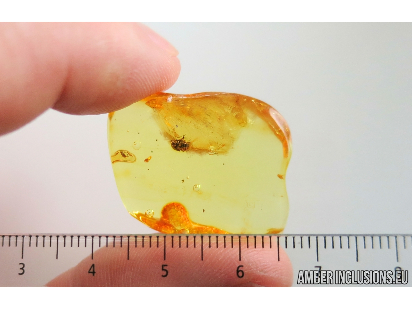 It weighs 3.7 g. Measurements of stone 30x22x8mm, length of planthopper nymph ~2.5mm. bubbles ~1.5mm.