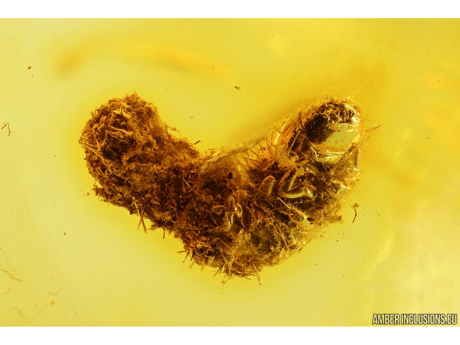 It weighs 0.7 grams. Measurements of stone 15x14x5mm, length of larva ~3.5mm.