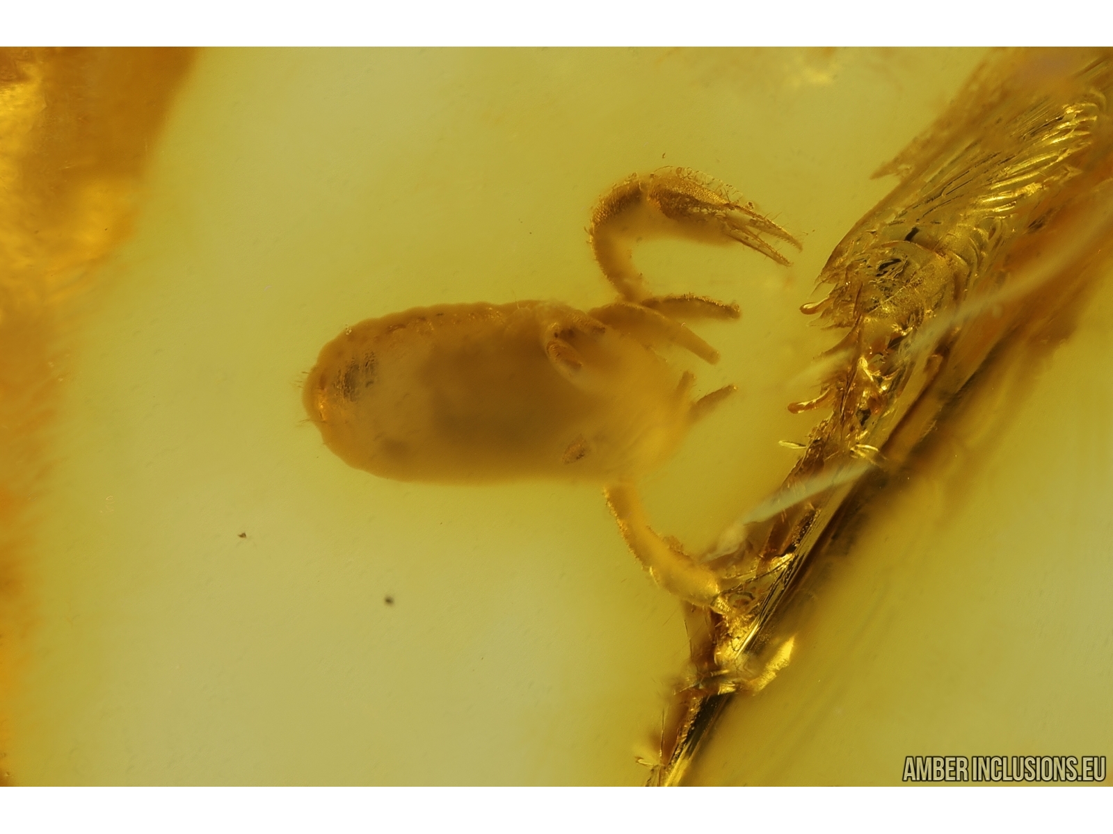 Baltic amber stone with fossil inclusion, trapped 34-56 million years ago - Pseudoscorpion, False scorpion.