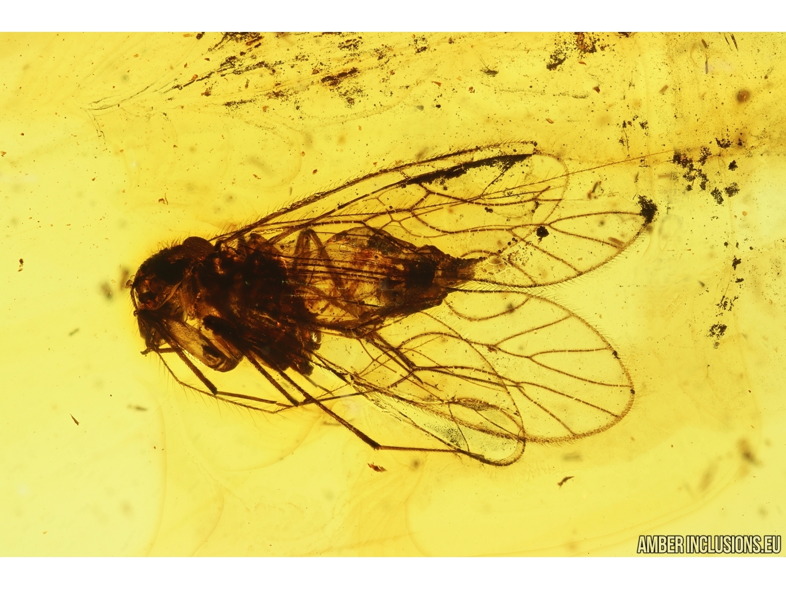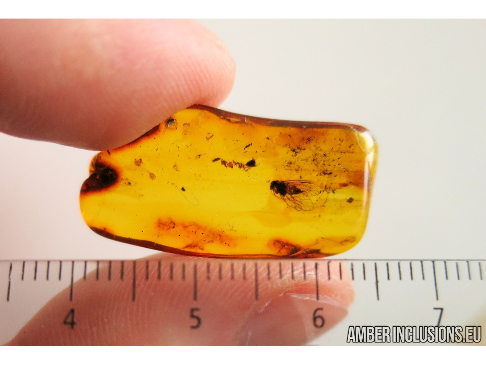 Baltic amber stone with fossil inclusion, trapped 34-56 million years ago - Psocid, Psocoptera.