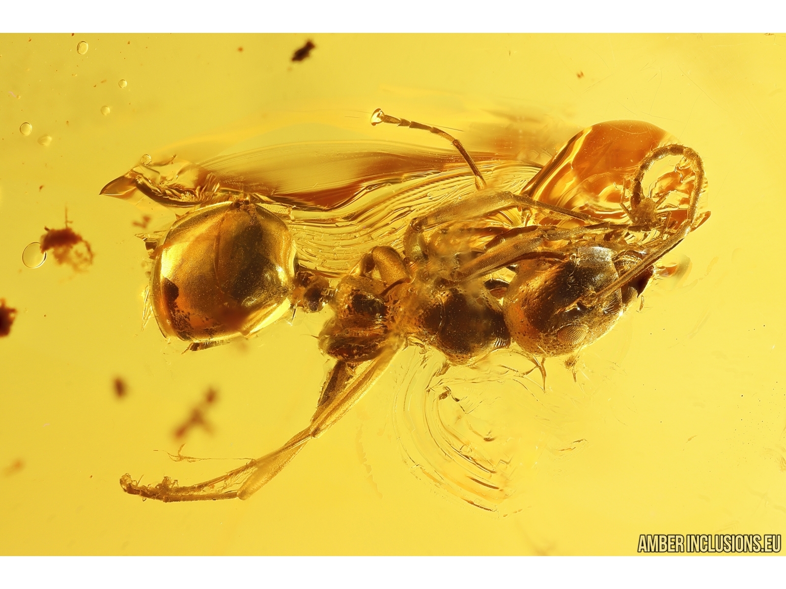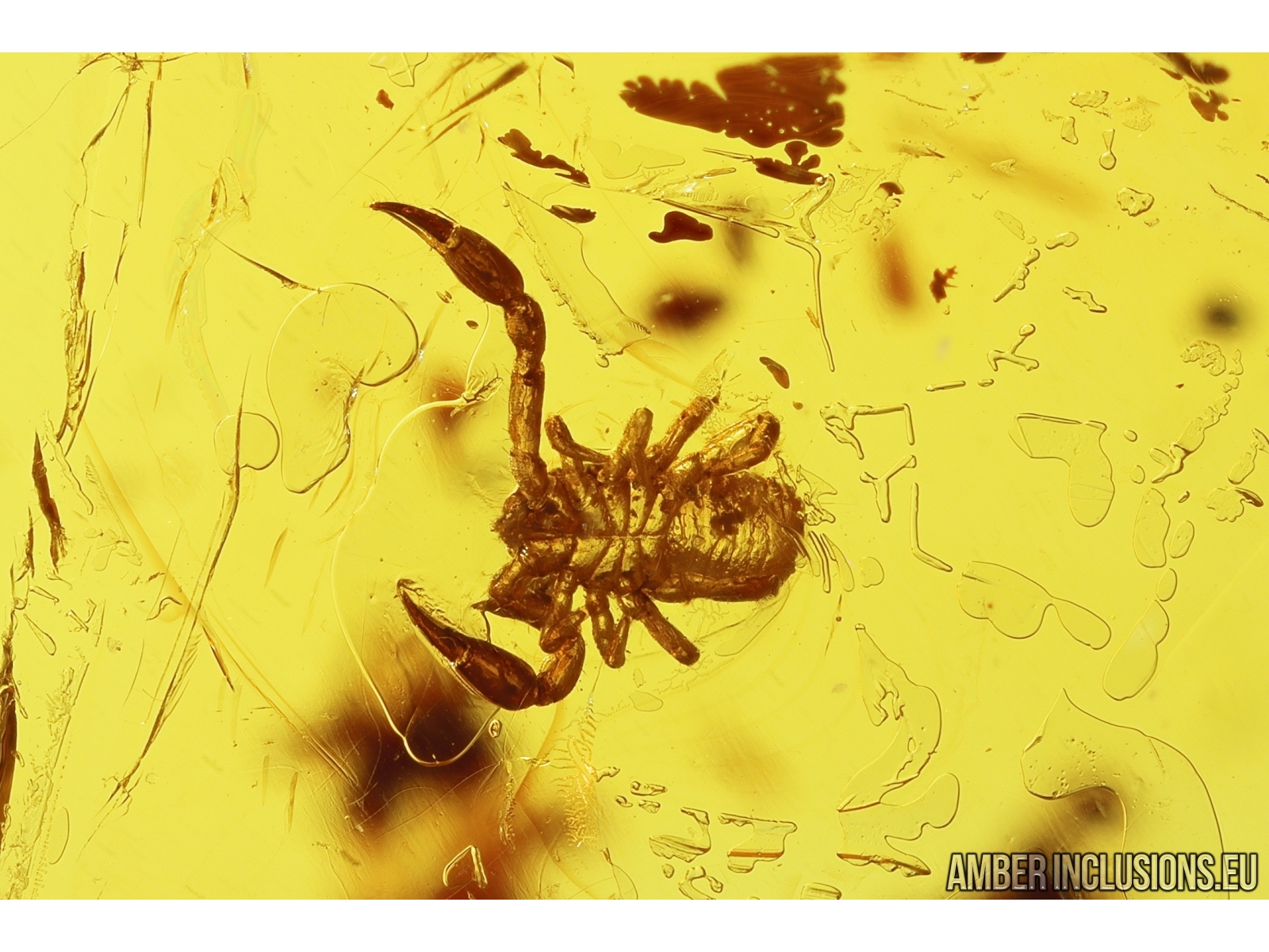 Baltic amber stone with fossil inclusions, trapped 34-56 million years ago - Rare Ant Formicidae Dolichoderus balticus and Pseudoscorion.
