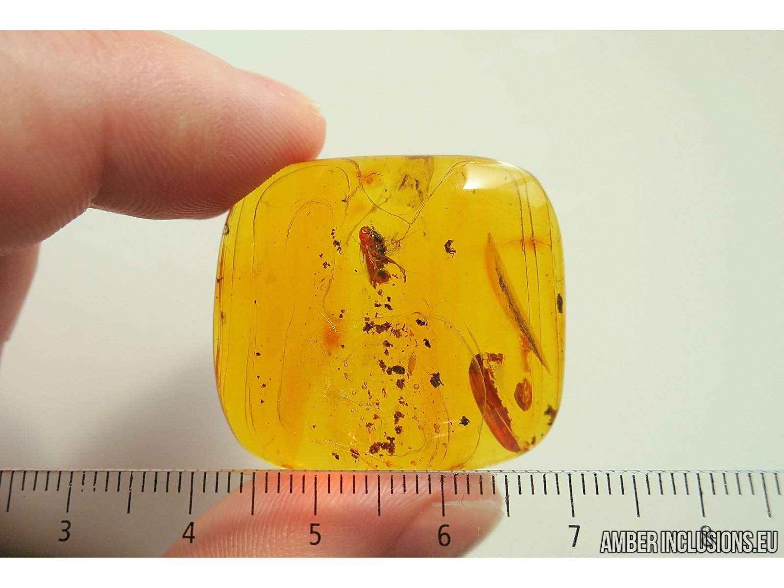 It weighs 7 g. Measurements of stone 32x30x10mm, length of ant ~4mm, pseudoscorpion ~1mm.