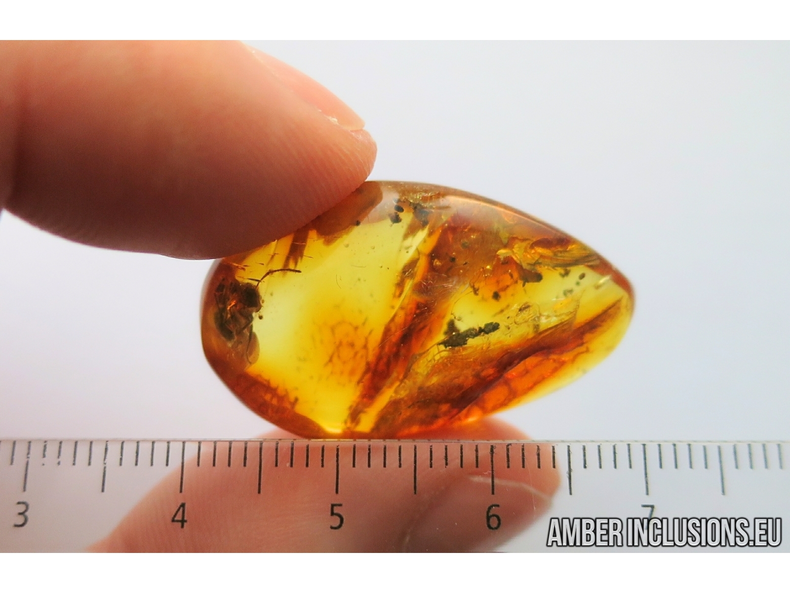 It weighs 3.1 g. Measurements of stone 30x14x9mm, length of ant ~5mm.
