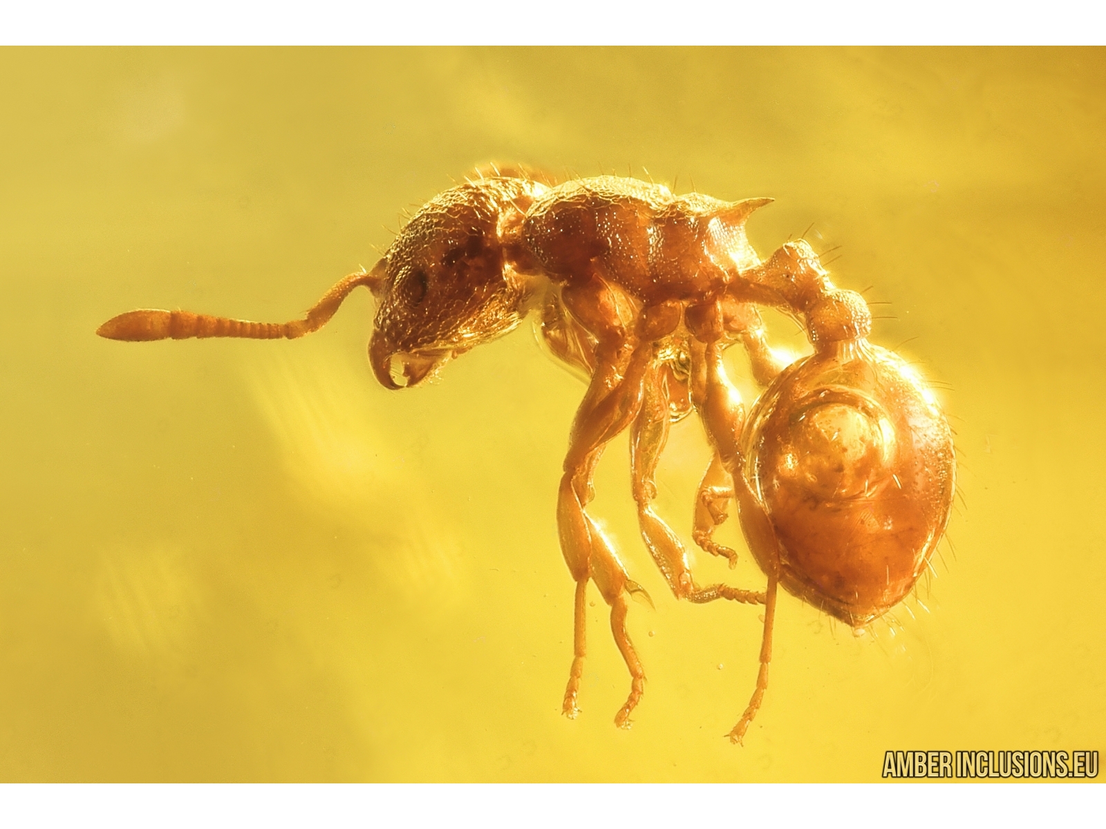 It weighs 5.4 g. Measurements of stone 44x27x20mm, length of ant ~1.8mm
