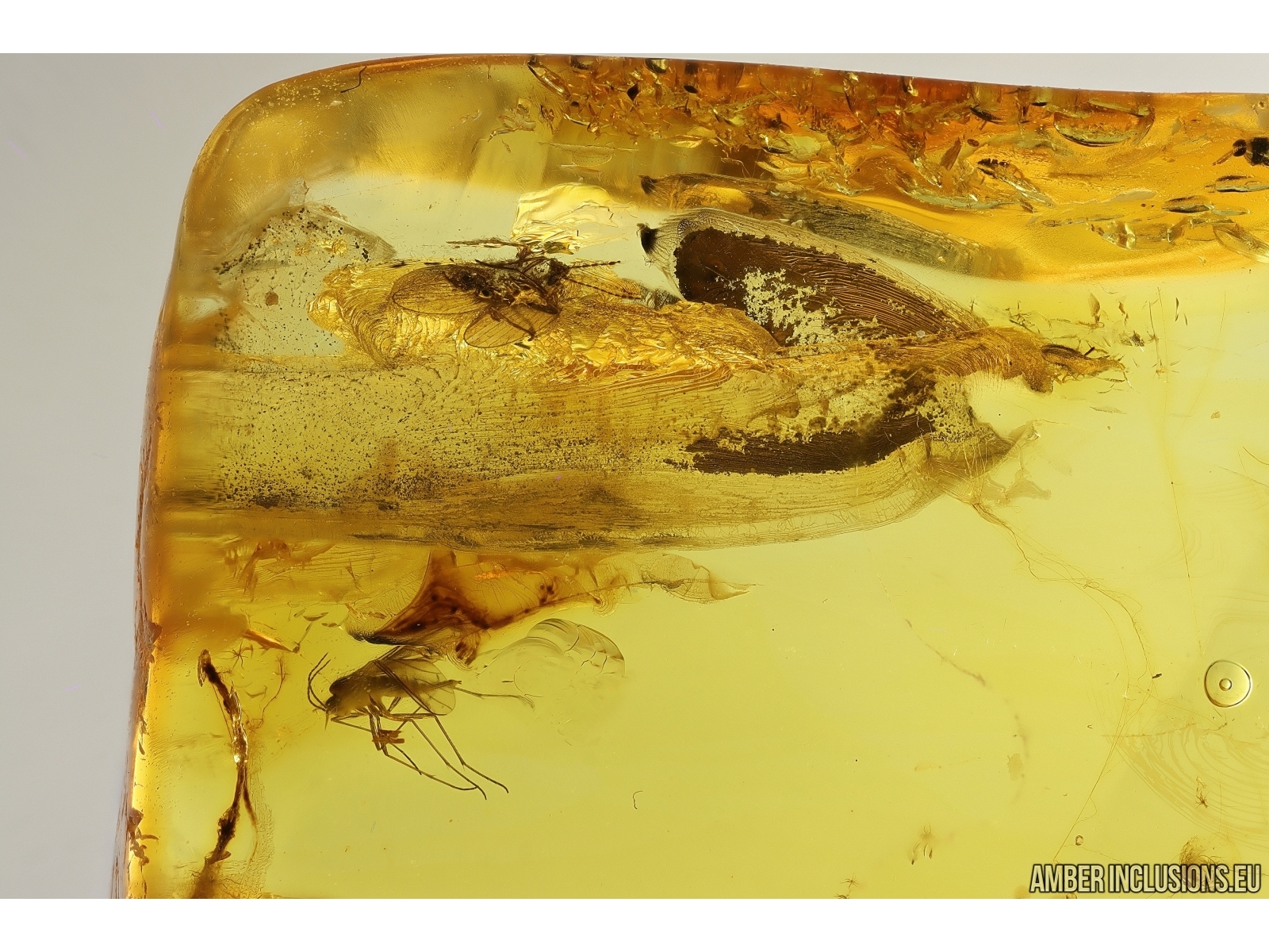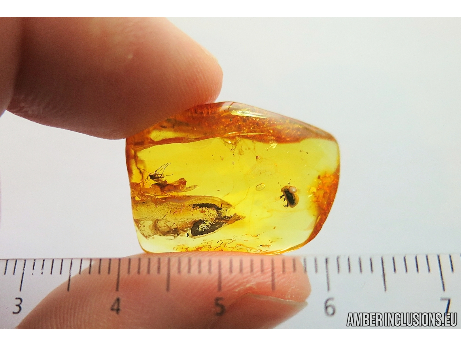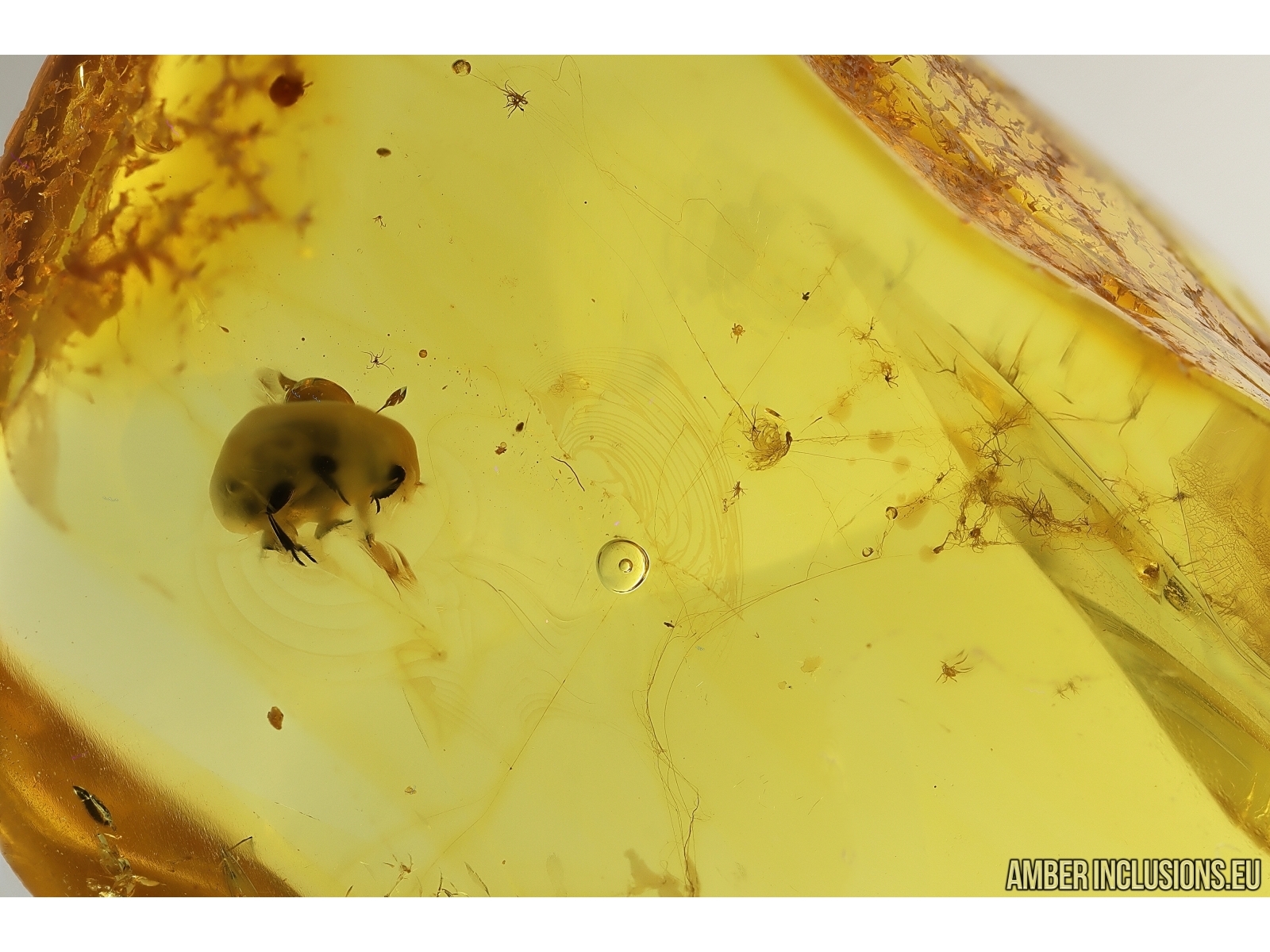 Baltic amber stone with fossil inclusions, trapped 34-56 million years ago - Rare Clown Beetle Histeridae, Spider Web and More.