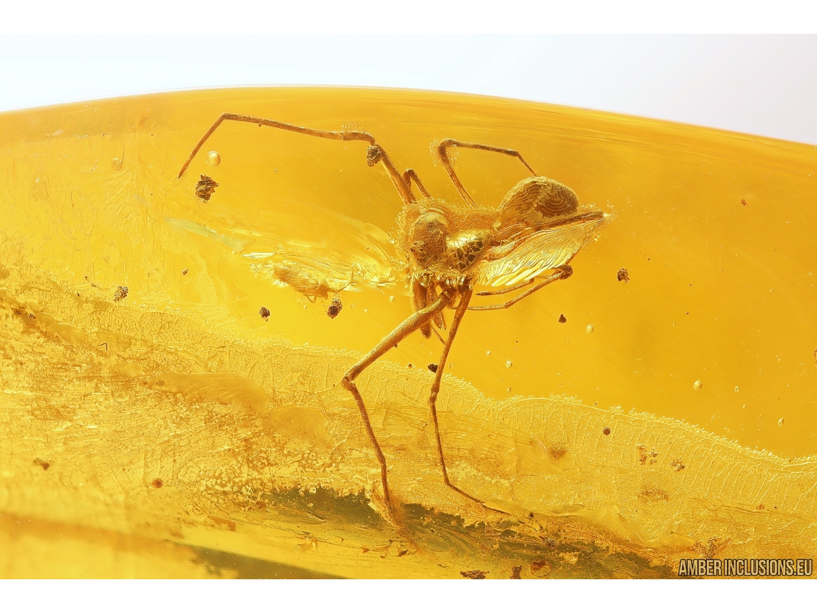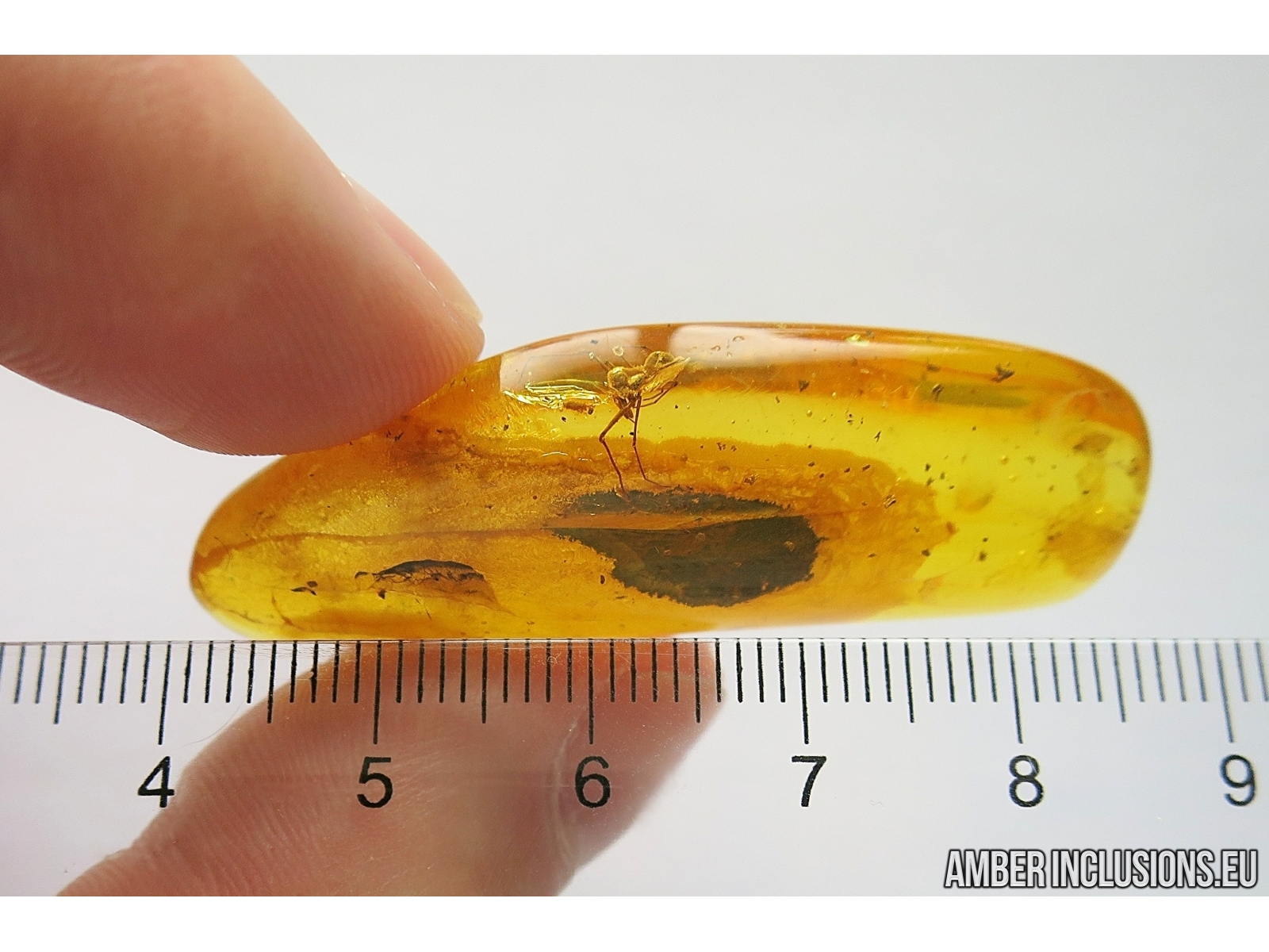 Baltic amber stone with fossil inclusion, trapped 34-56 million years ago - Rare Dawn Spider Archaeidae Paradoxa.