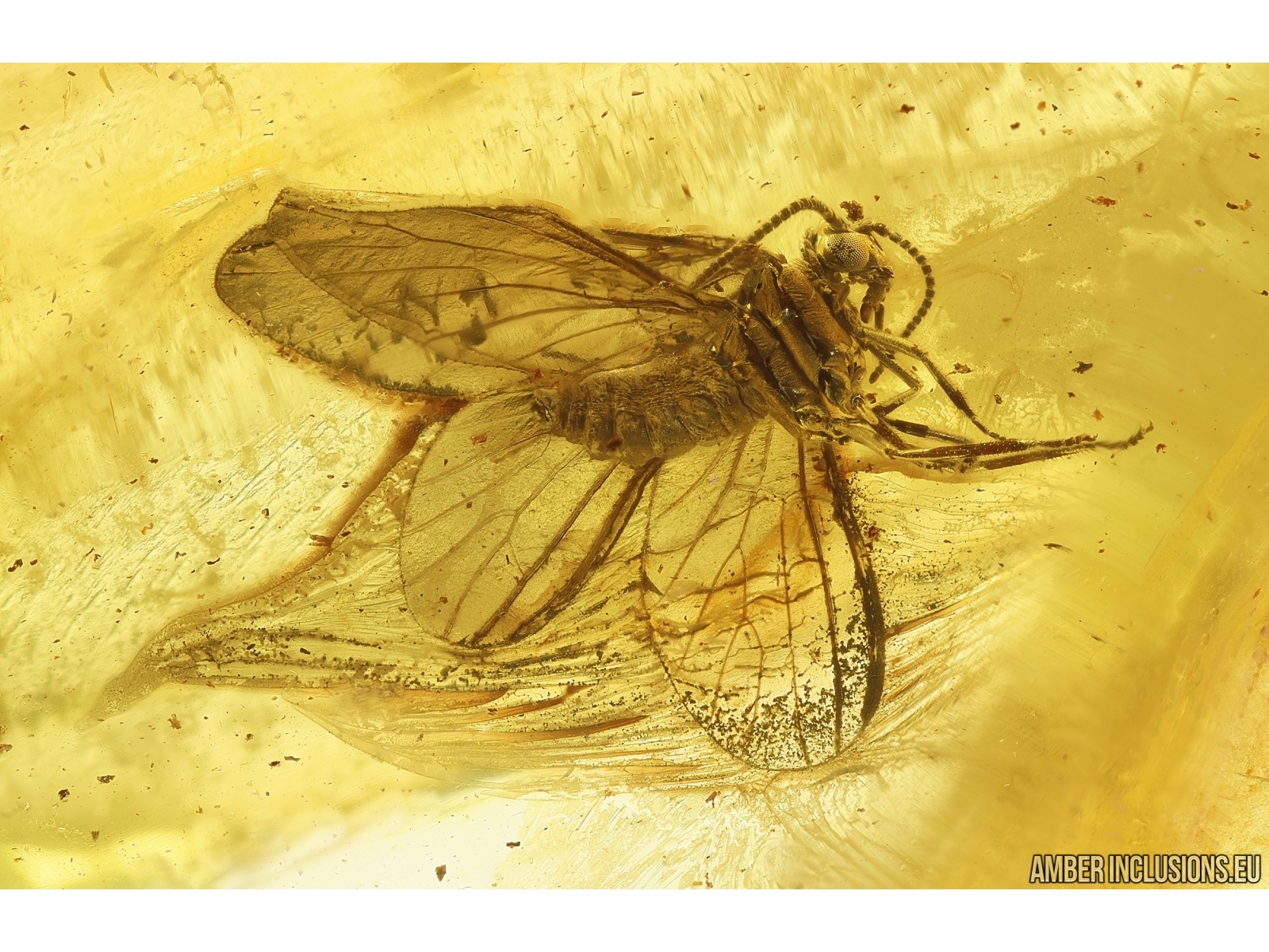 Baltic amber stone with fossil inclusion, trapped 34-56 million years ago - Rare Dustywing Neuroptera Coniopterygidae Archiconis electrica.