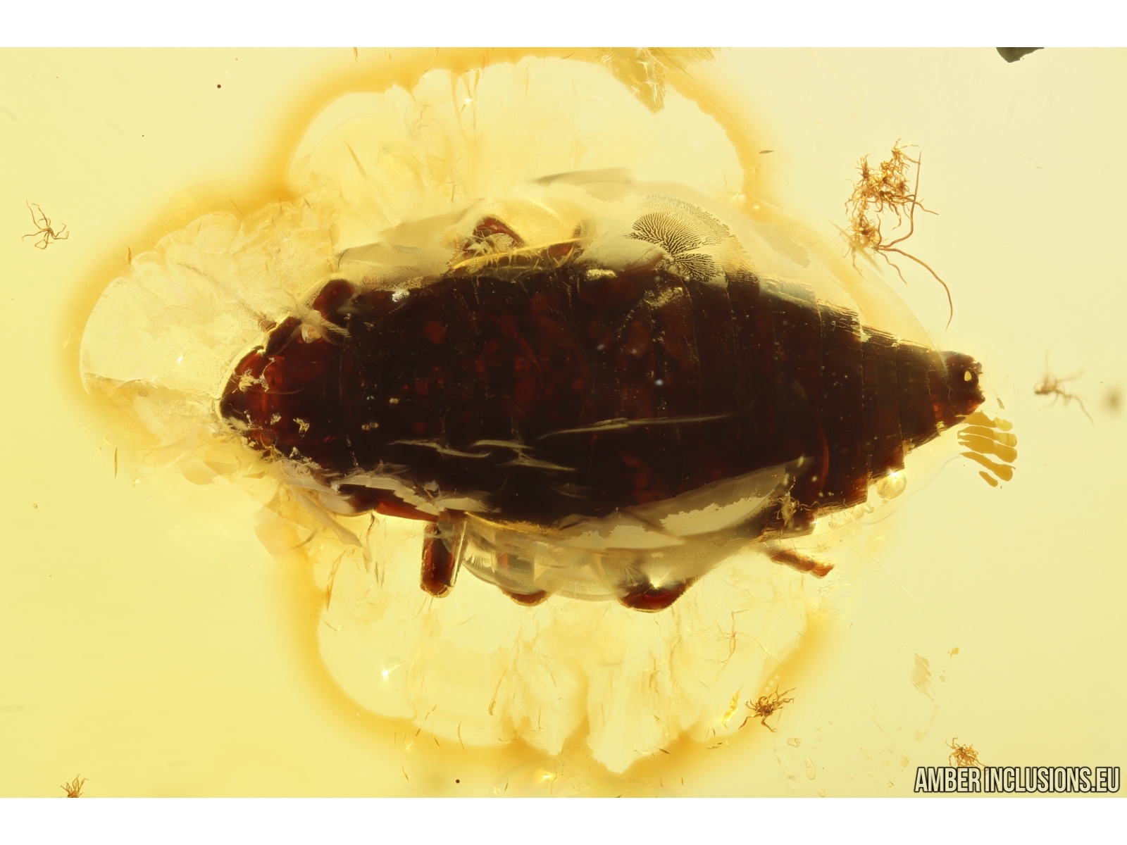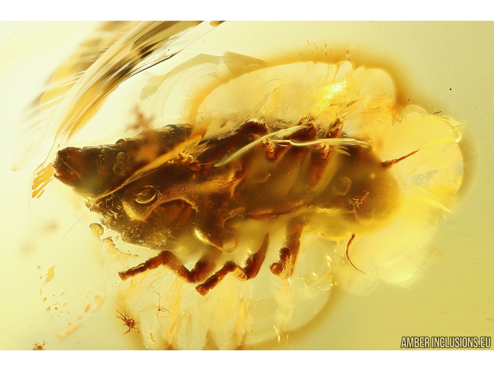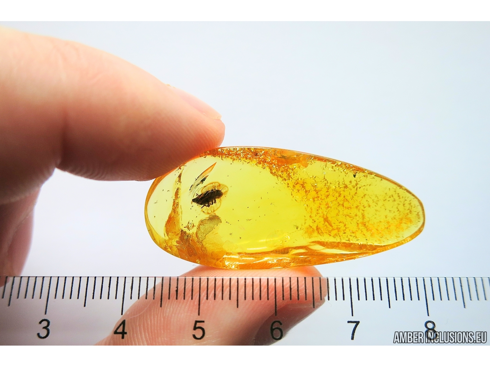 Ukrainian Rovno amber stone with fossil inclusion, trapped 34-56 million years ago - Rare Froghopper Nymph Cercopoidea Aphrophoridae. First example in amber!