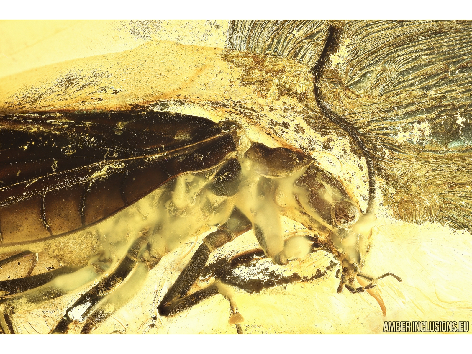 Baltic amber stone with fossil inclusion, trapped 34-56 million years ago - Rare Huge 21mm! ALDERFLY MEGALOPTERA.