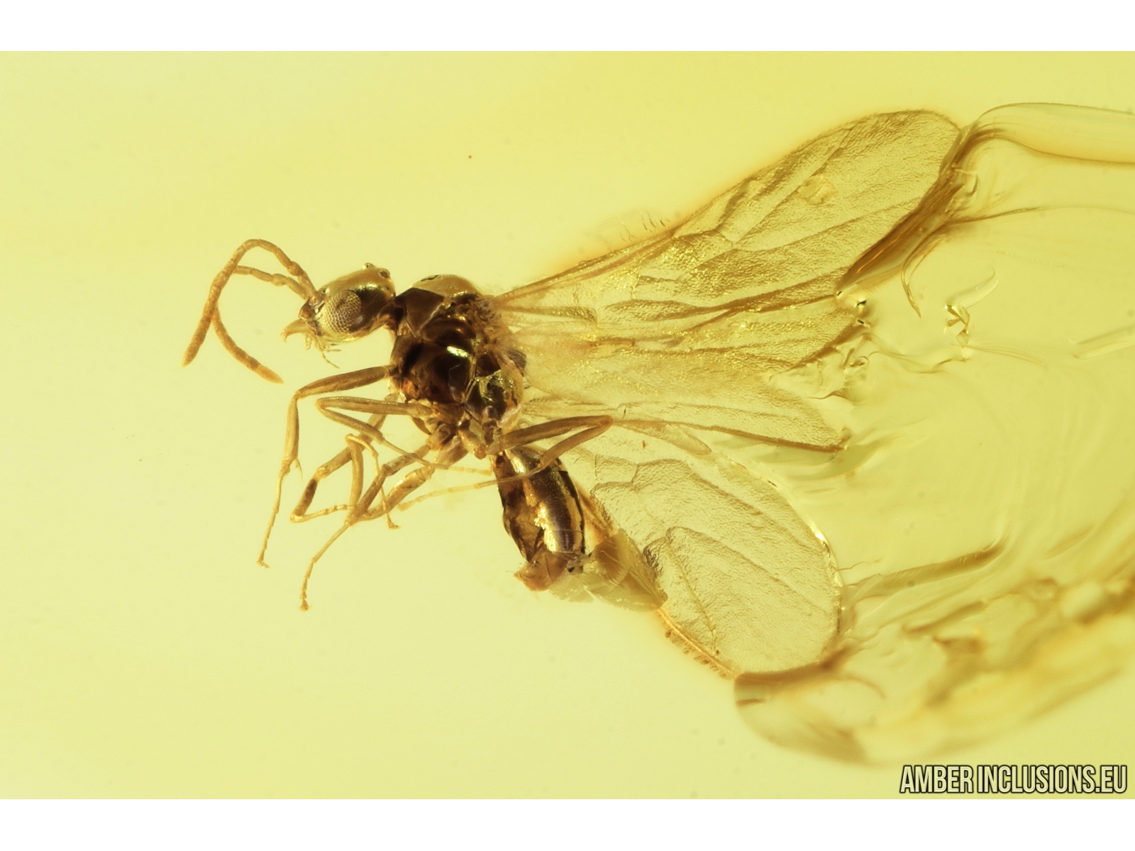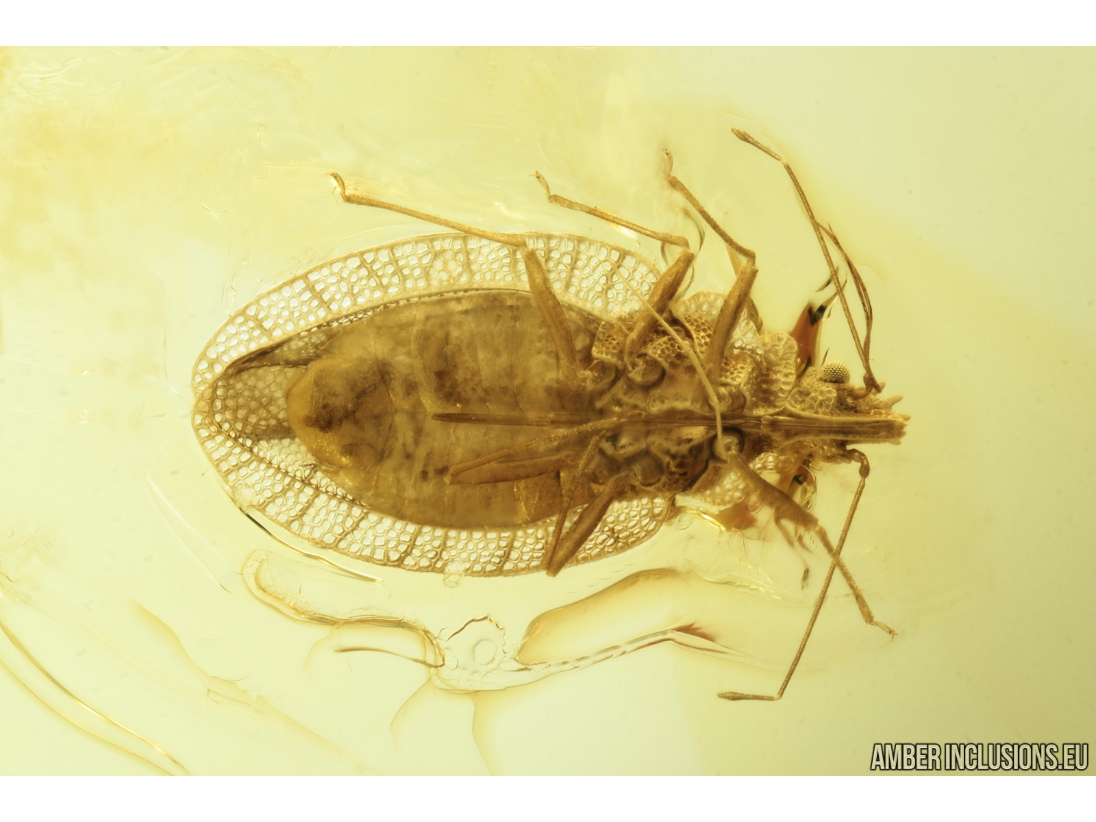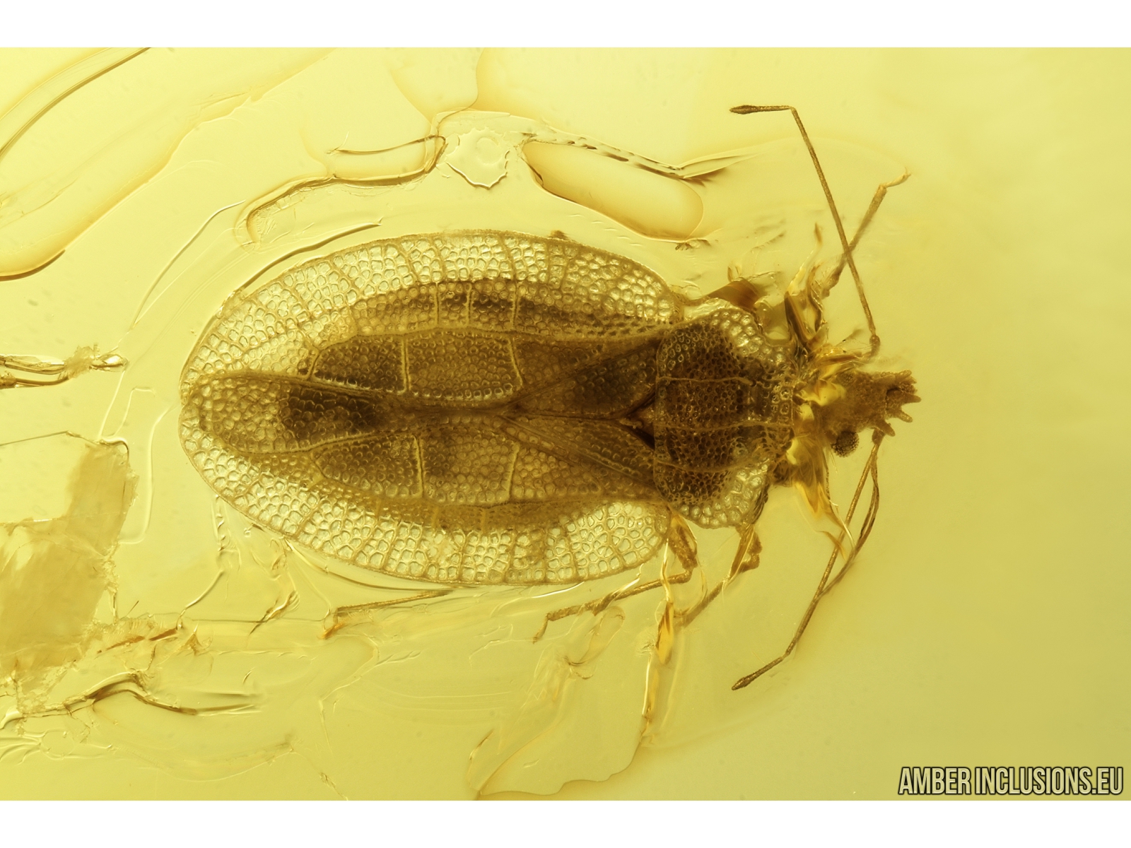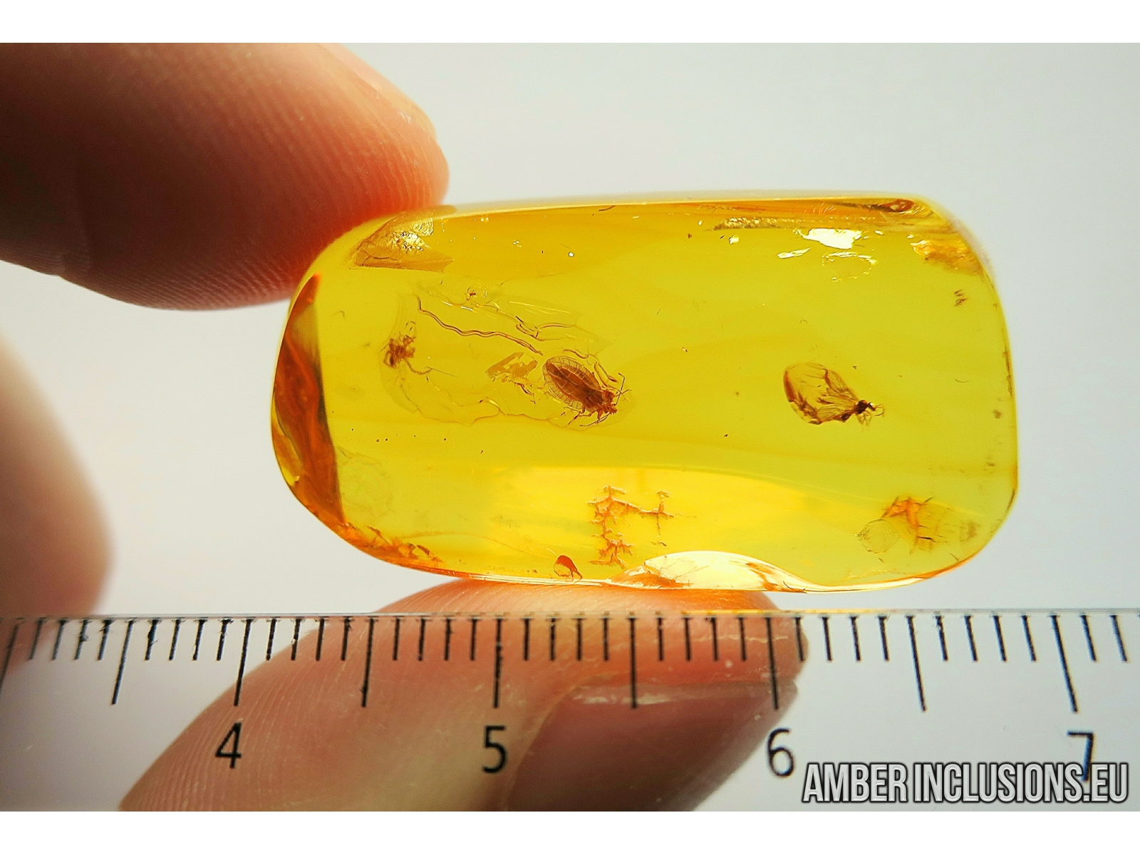 Baltic amber stone with fossil inclusions, trapped 34-56 million years ago -Rare Lace Bug Tingidae Parasinalda baltica, Spider Araneae and Winged Ant Hymenoptera.