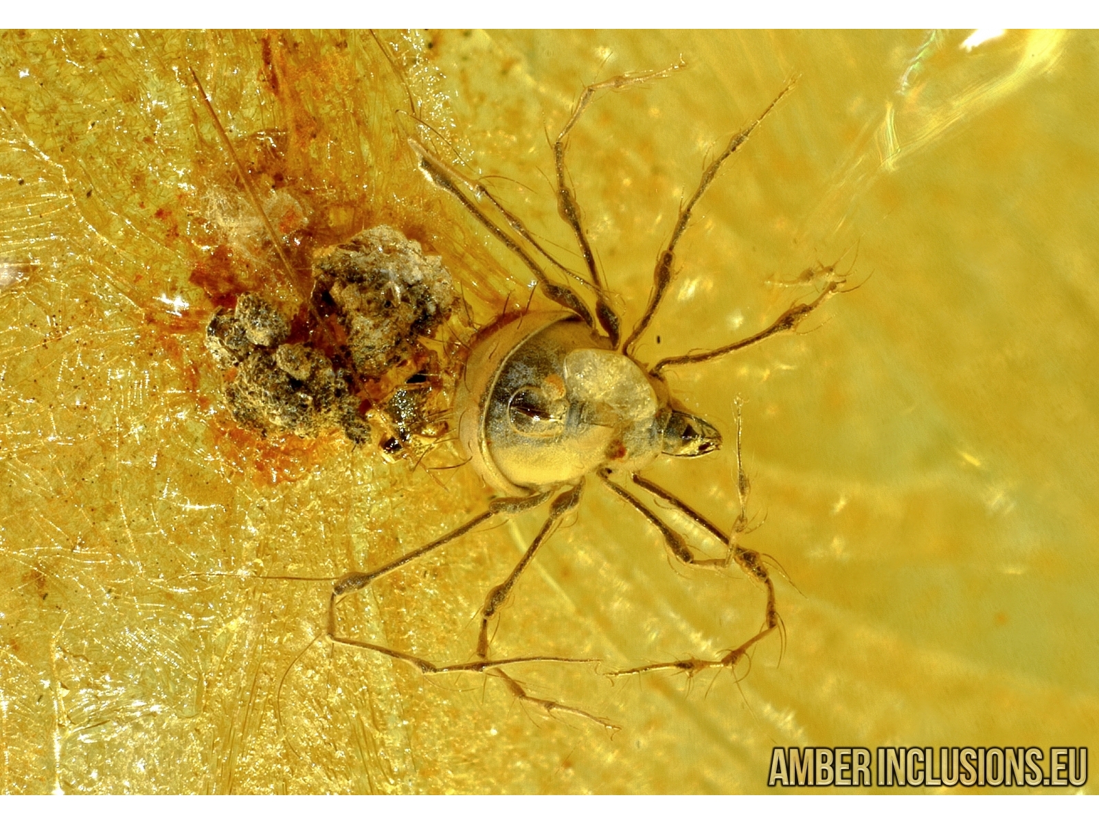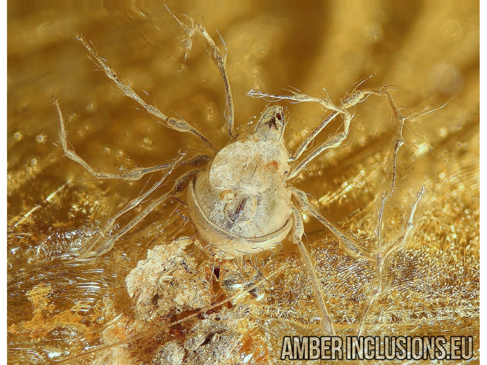 Baltic amber stone with fossil inclusion - Rare Mite, Oribatida.