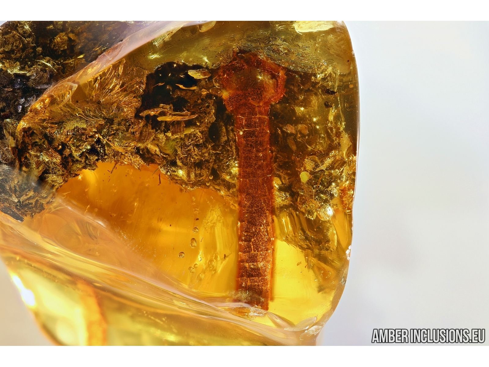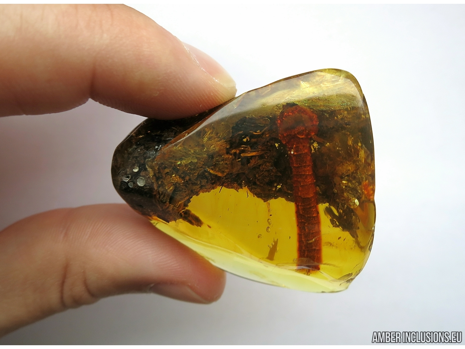 Baltic amber stone with fossil inclusion- Rare Plant, Probably Mushroom.