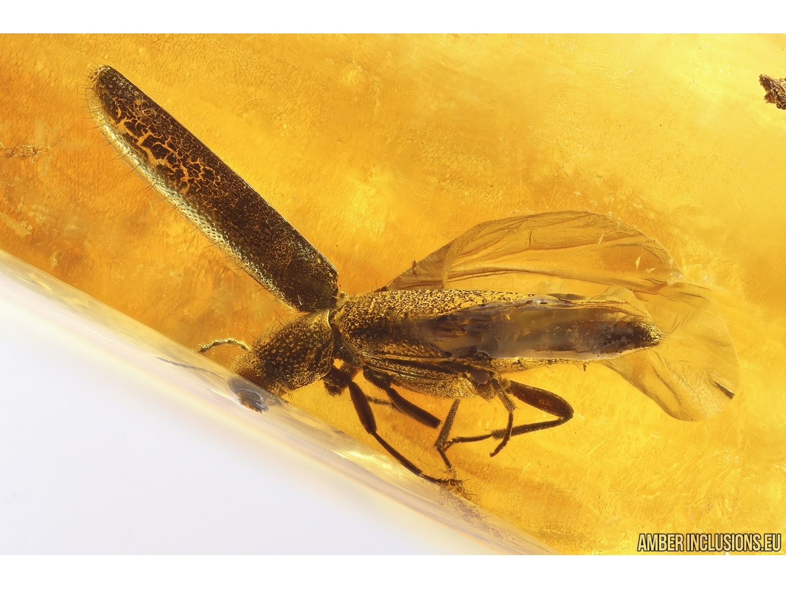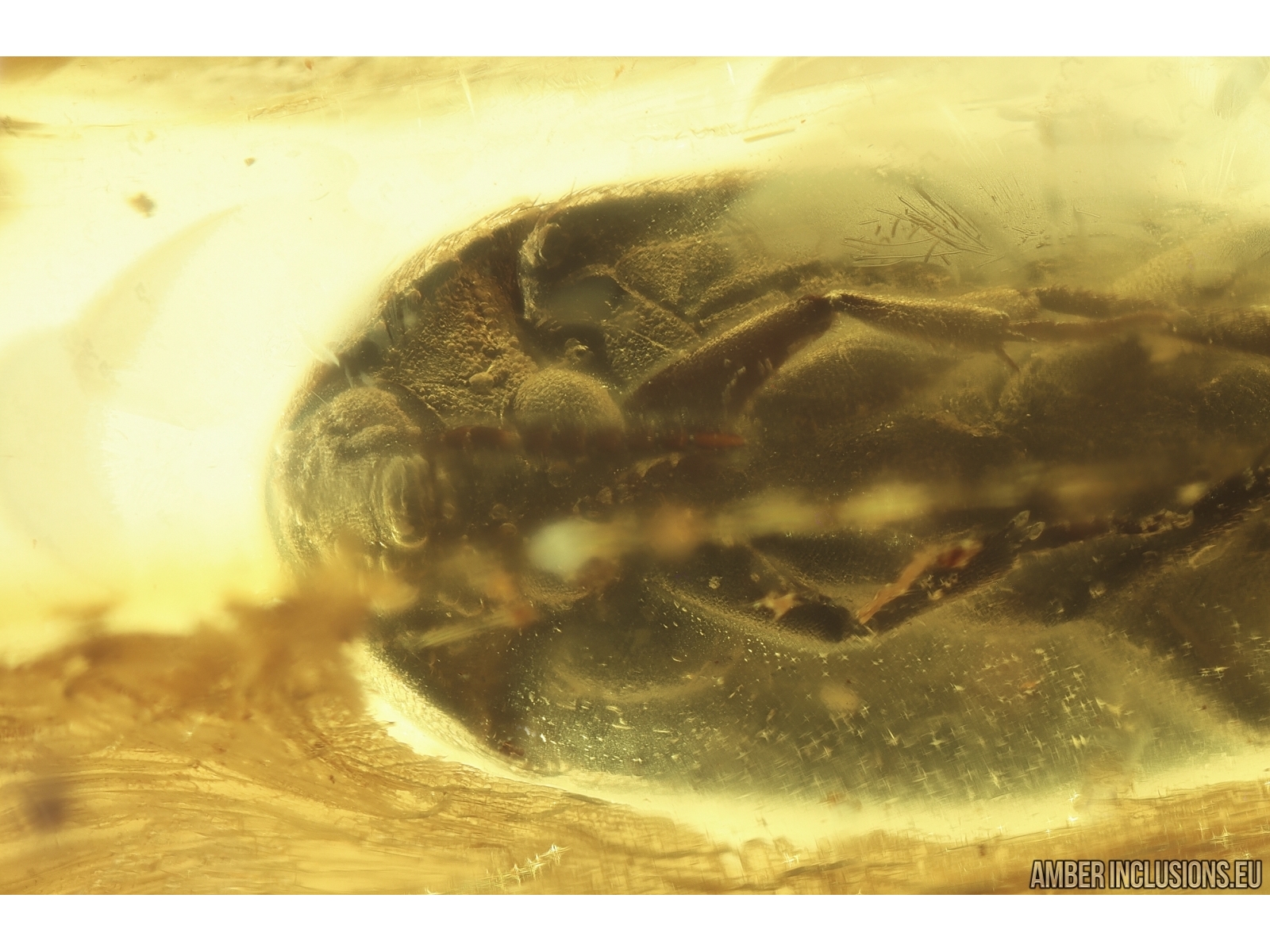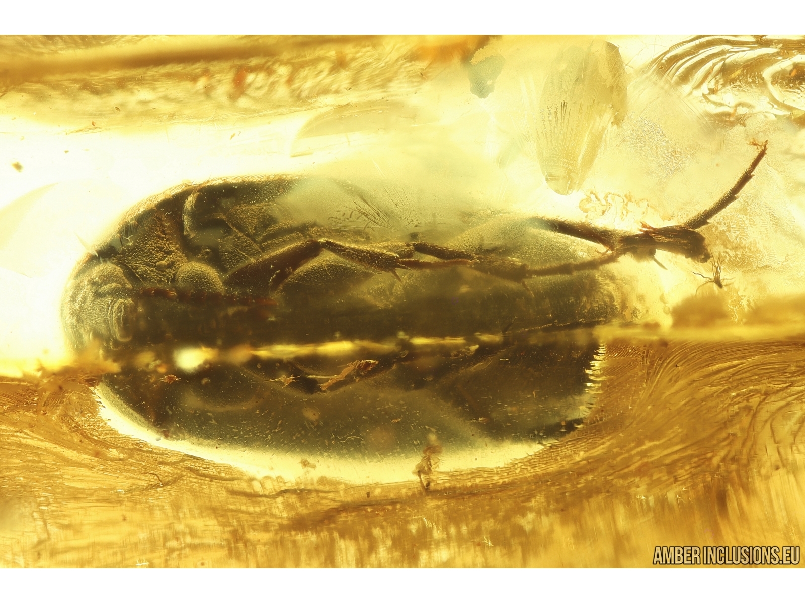 Ukrainian Rovno amber stone with fossil inclusions, trapped 34-56 million years ago -Rare Polypore fungus beetle Tetratomidae Eustrophinae and Checkered beetle Cleridae