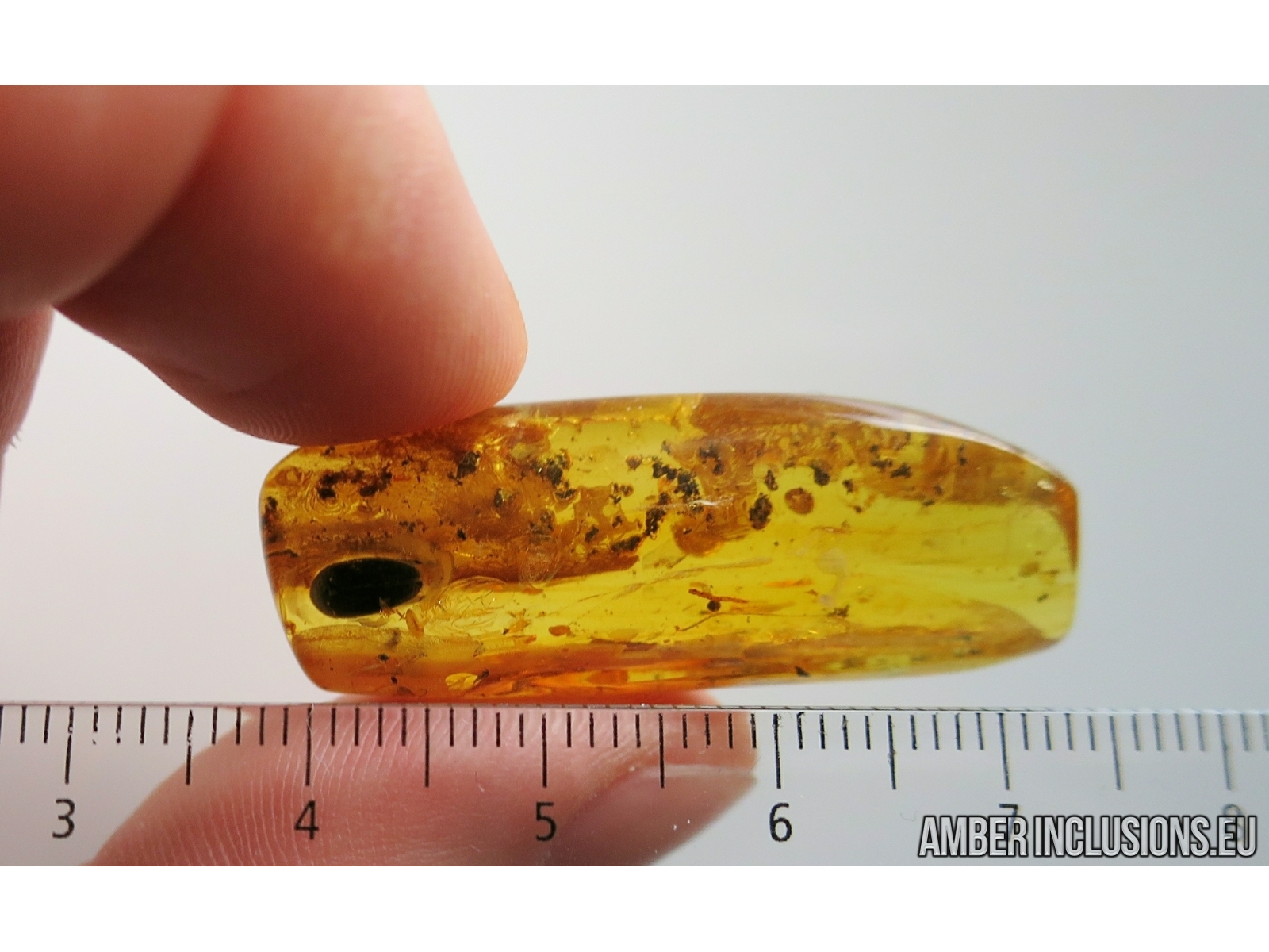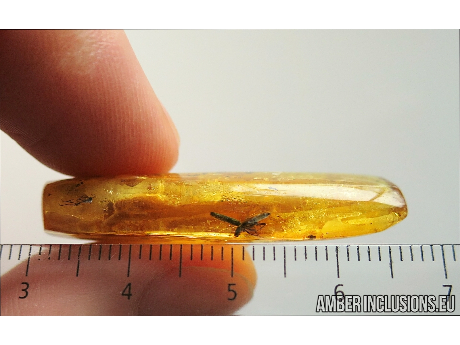 It weighs 3.1 g. Measurements of stone 39x14x7mm, length of polypore fungus beetle ~5mm, checkered beetle ~6mm.