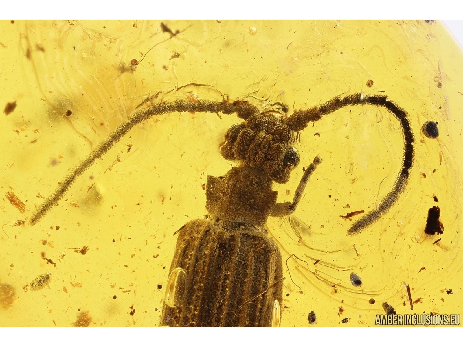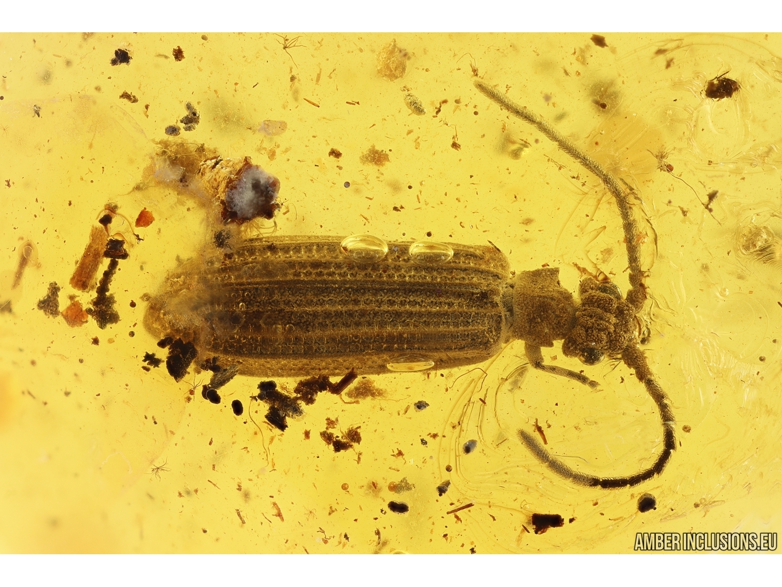 Baltic amber stone with fossil inclusion, trapped 34-56 million years ago - Rare Reticulated Beetle Cupedidae.