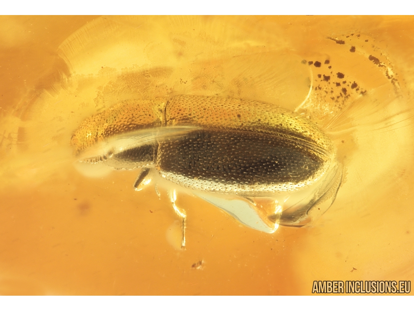 Baltic amber stone with fossil inclusion, trapped 34-56 million years ago - Rare Silken fungus beetle Cryptophagidae ?Henoticus.