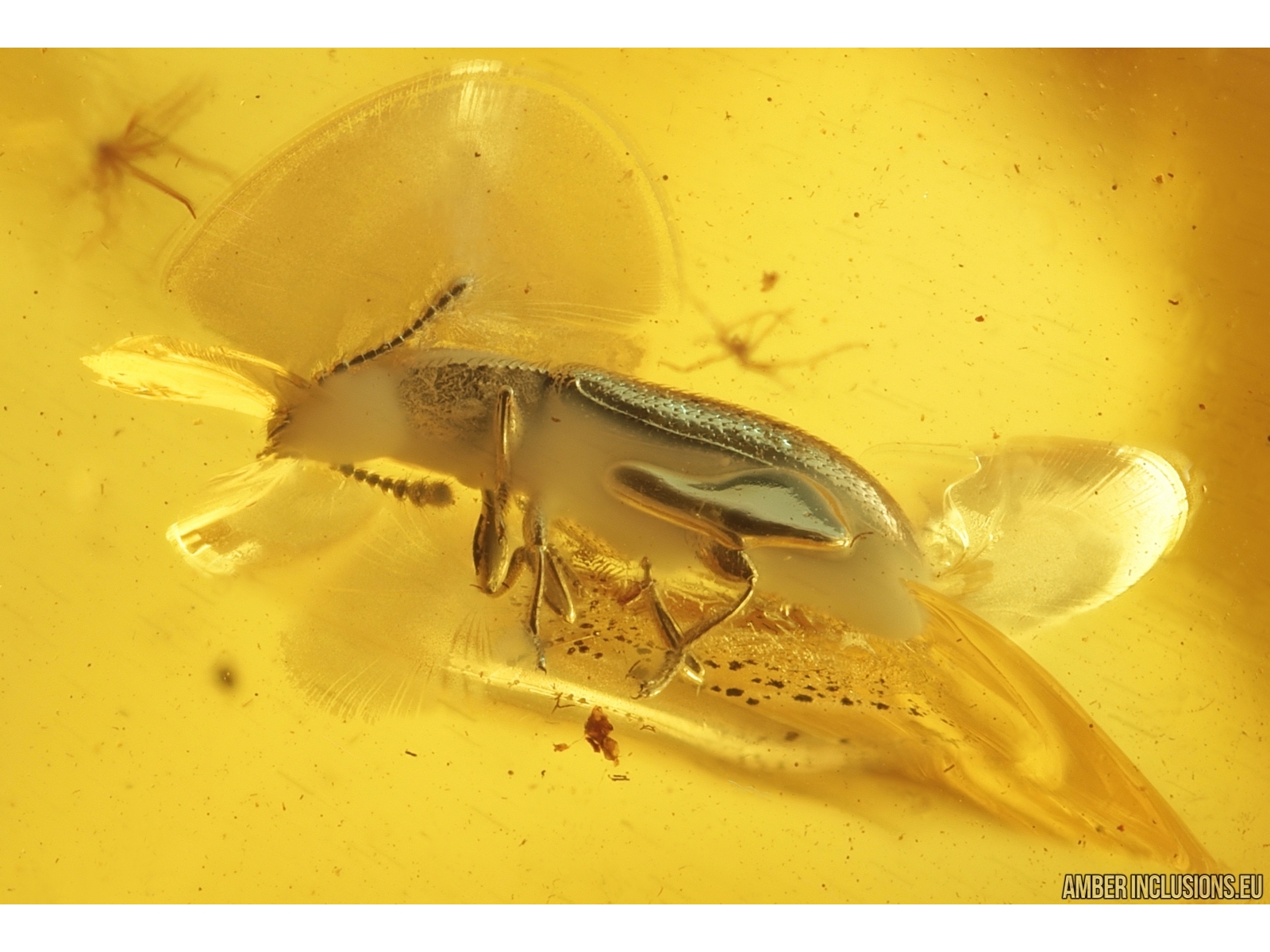 It weighs 1 g. Measurements of stone 14x14x8mm, length of silken fungus beetle ~2.5mm.