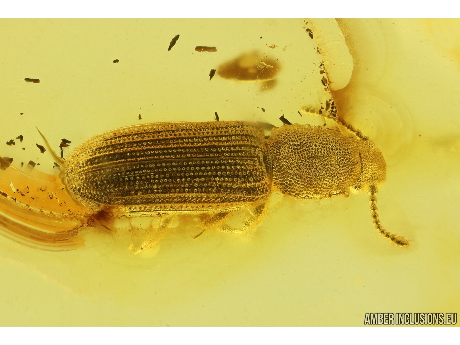 Baltic amber stone with fossil inclusions, trapped 34-56 million years ago - Rare Silvanid Flat Bark Beetle Silvanidae.