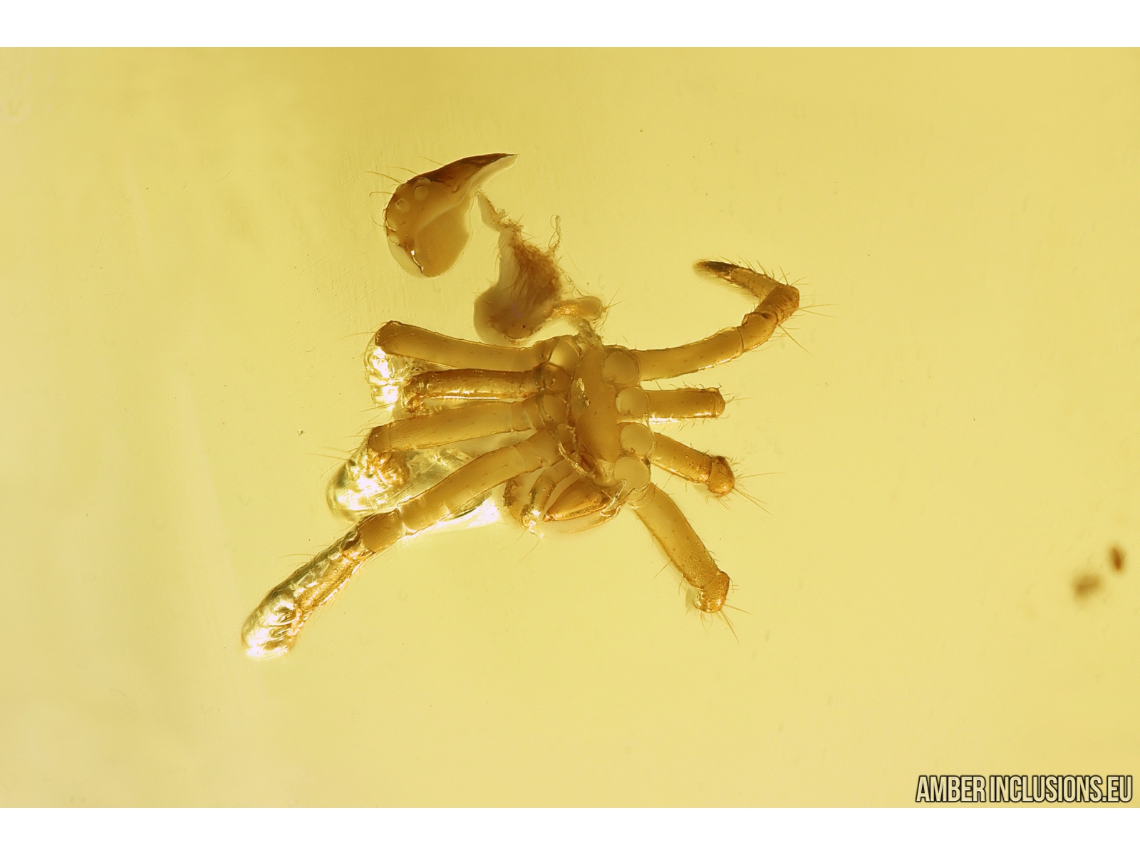 Ukrainian Rovno amber stone with fossil inclusions, trapped 34-56 million years ago - Rare Snakefly Larva RAPHIDIOPTERA and Spider ARANEAE exuvium.