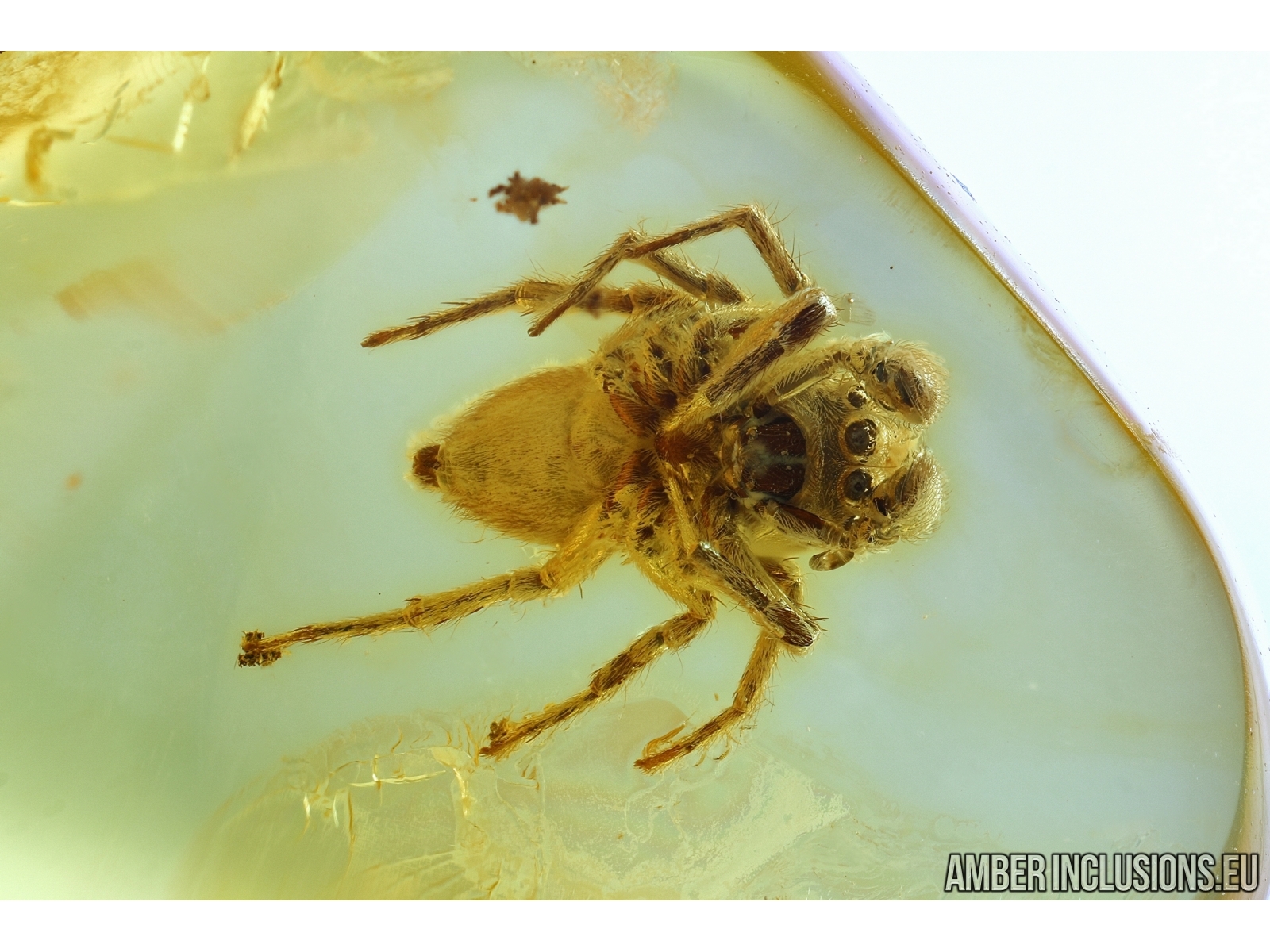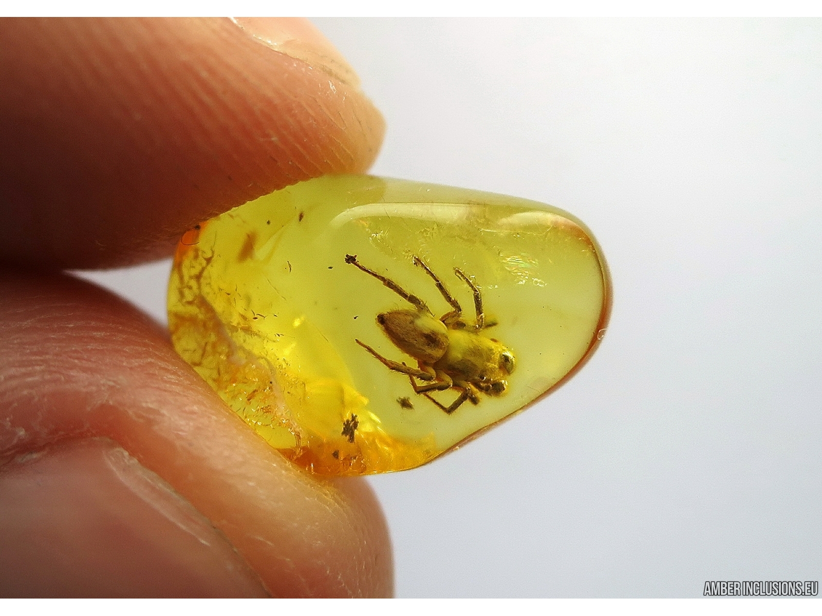 Baltic amber stone with fossil inclusion – Salticidae, Jumping Spider.