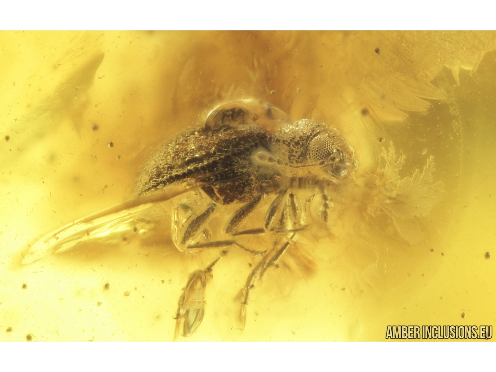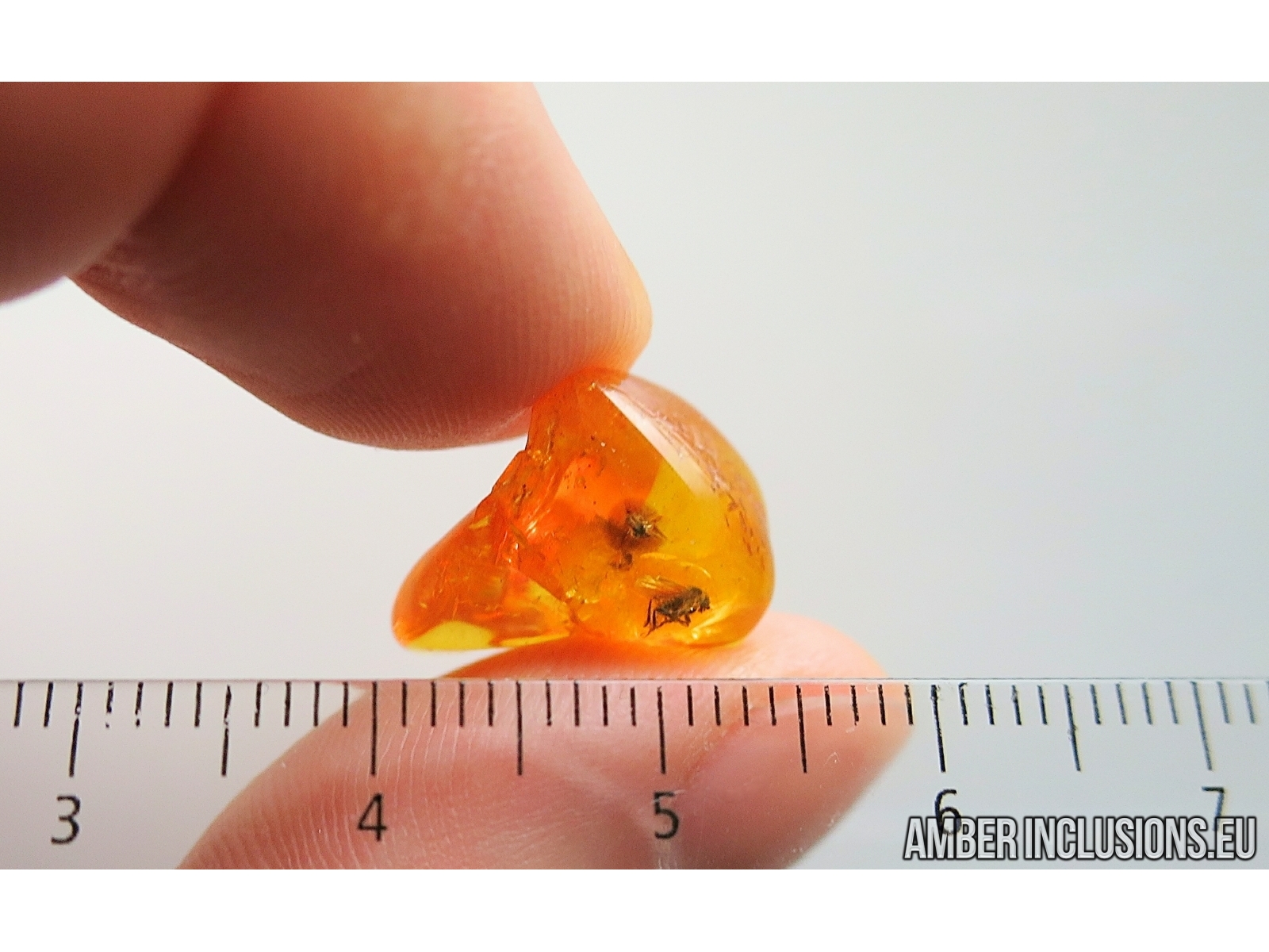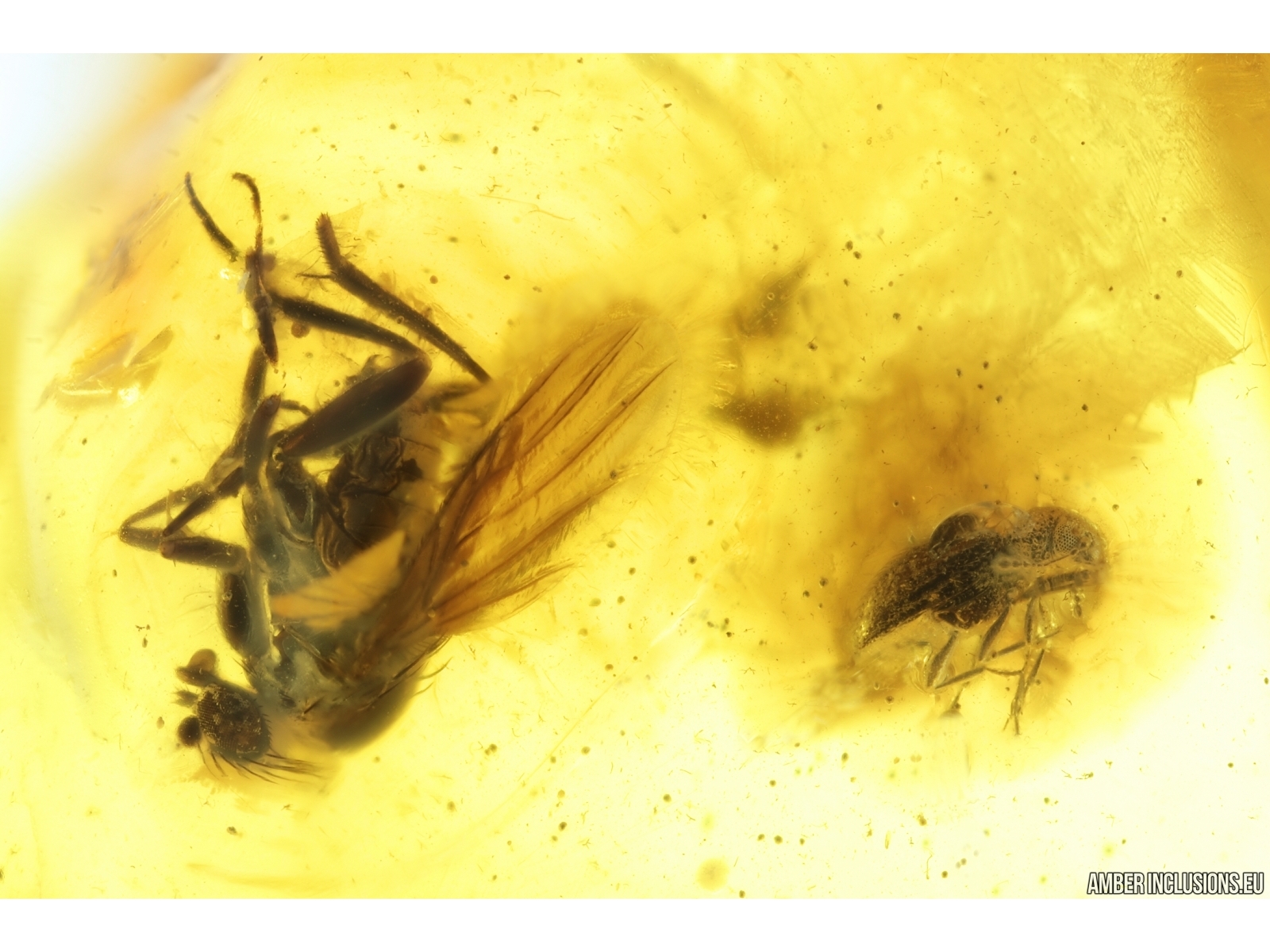 Baltic amber stone with fossil inclusion, trapped 34-56 million years ago -Scuttle Fly Phoridae. and Beetle.