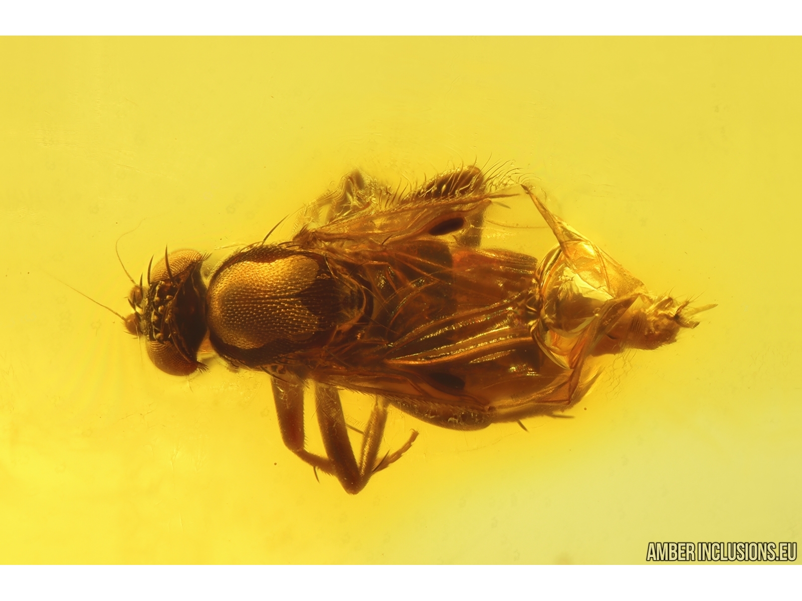 Baltic amber stone with fossil inclusion, trapped 34-56 million years ago -Scuttle Fly Phoridae.