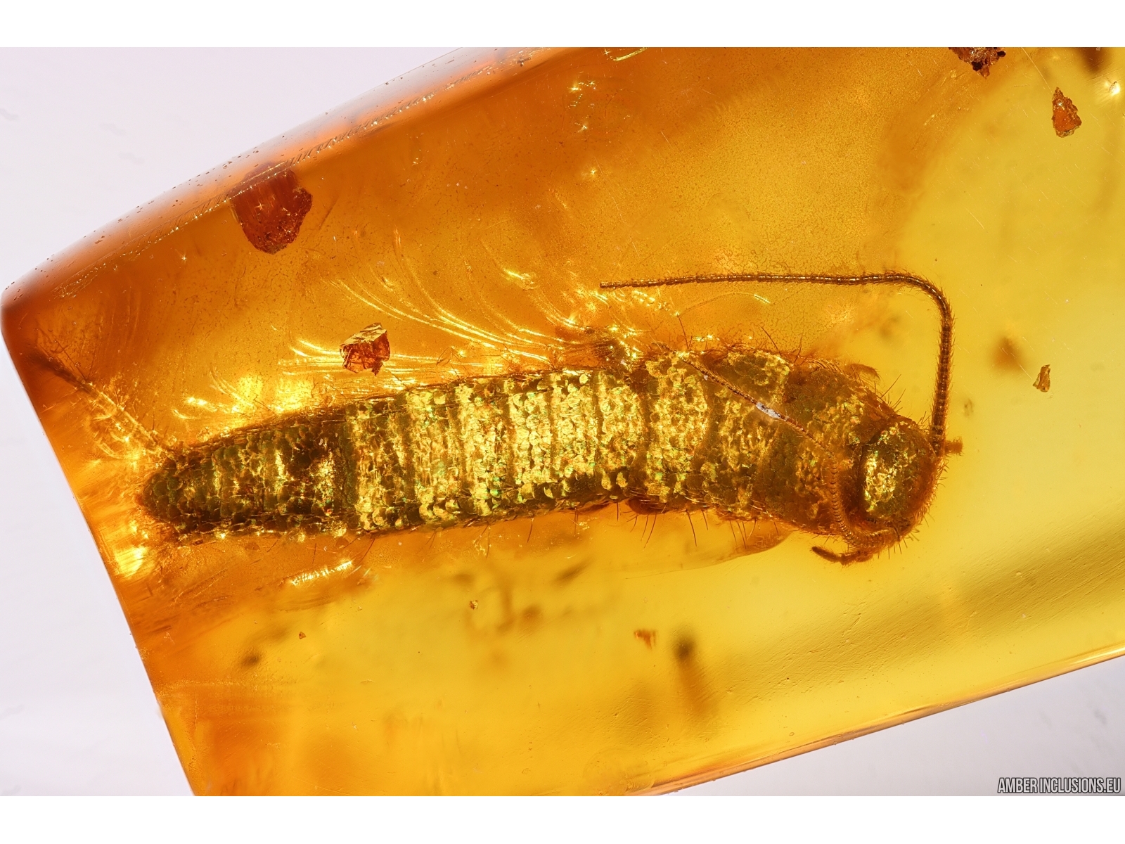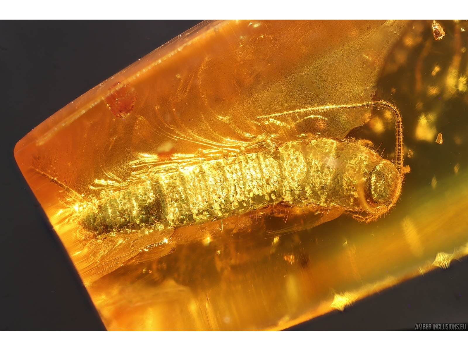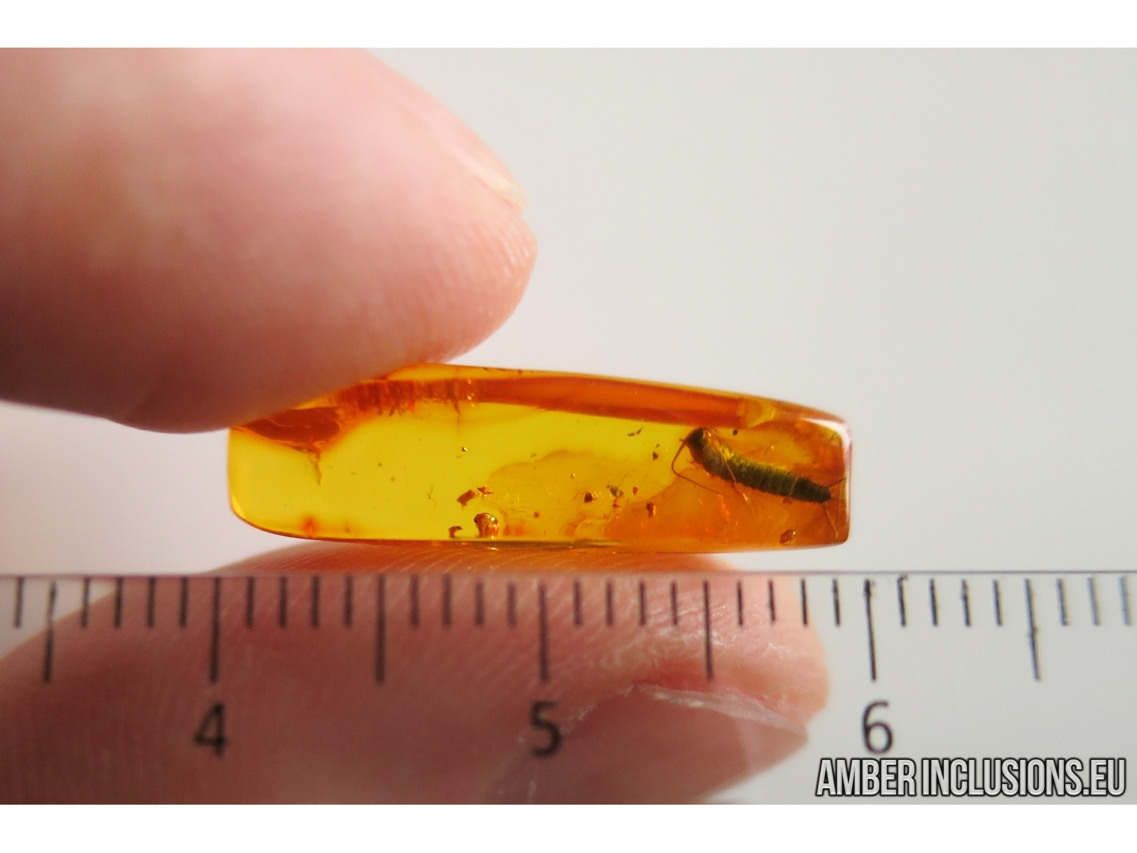 Baltic amber stone with fossil inclusion, trapped 34-56 million years ago -Silverfish, Lepismatidae.