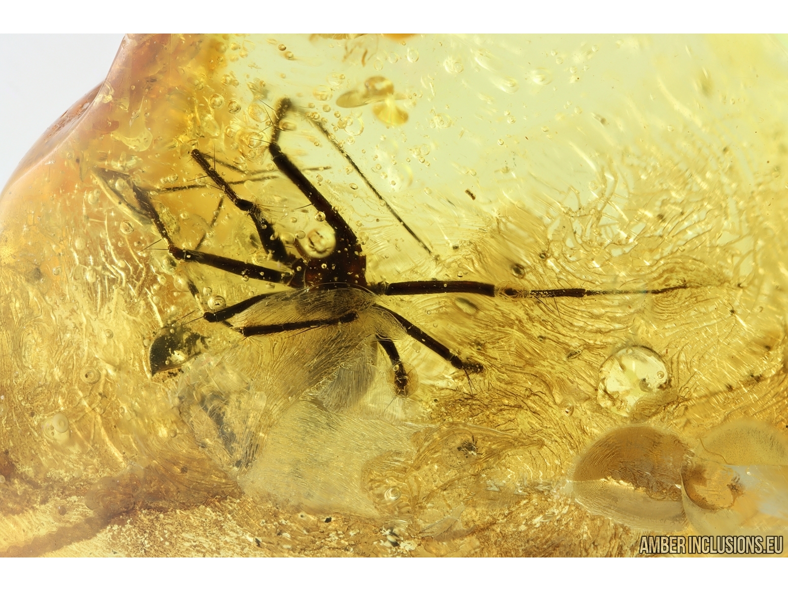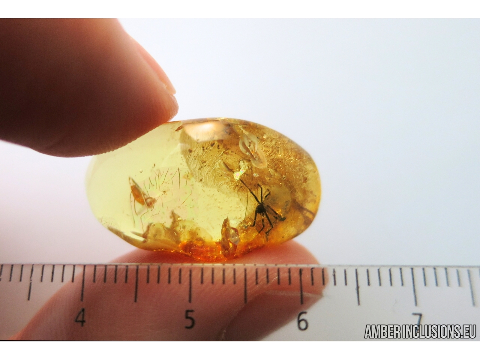 Ukrainian Rovno amber stone with fossil inclusion, trapped 34-56 million years ago - Spider Araneae.