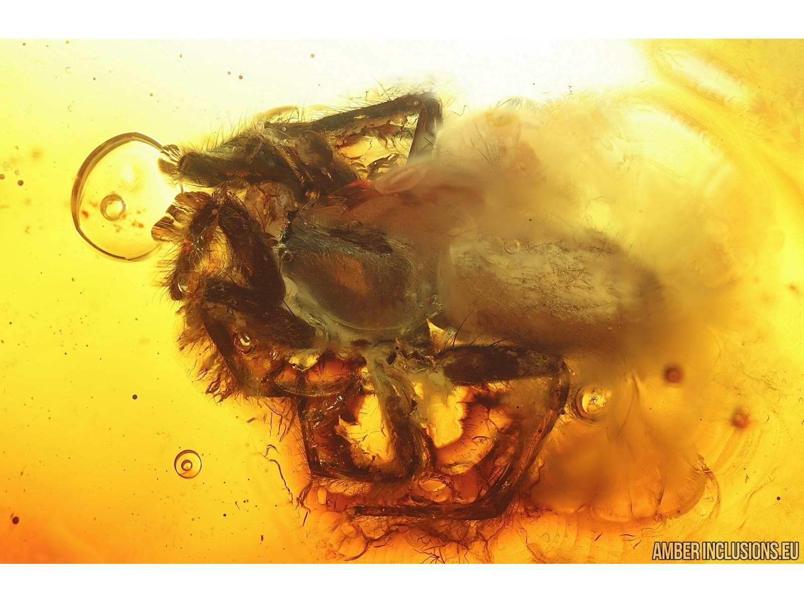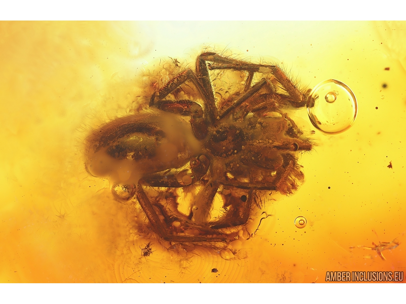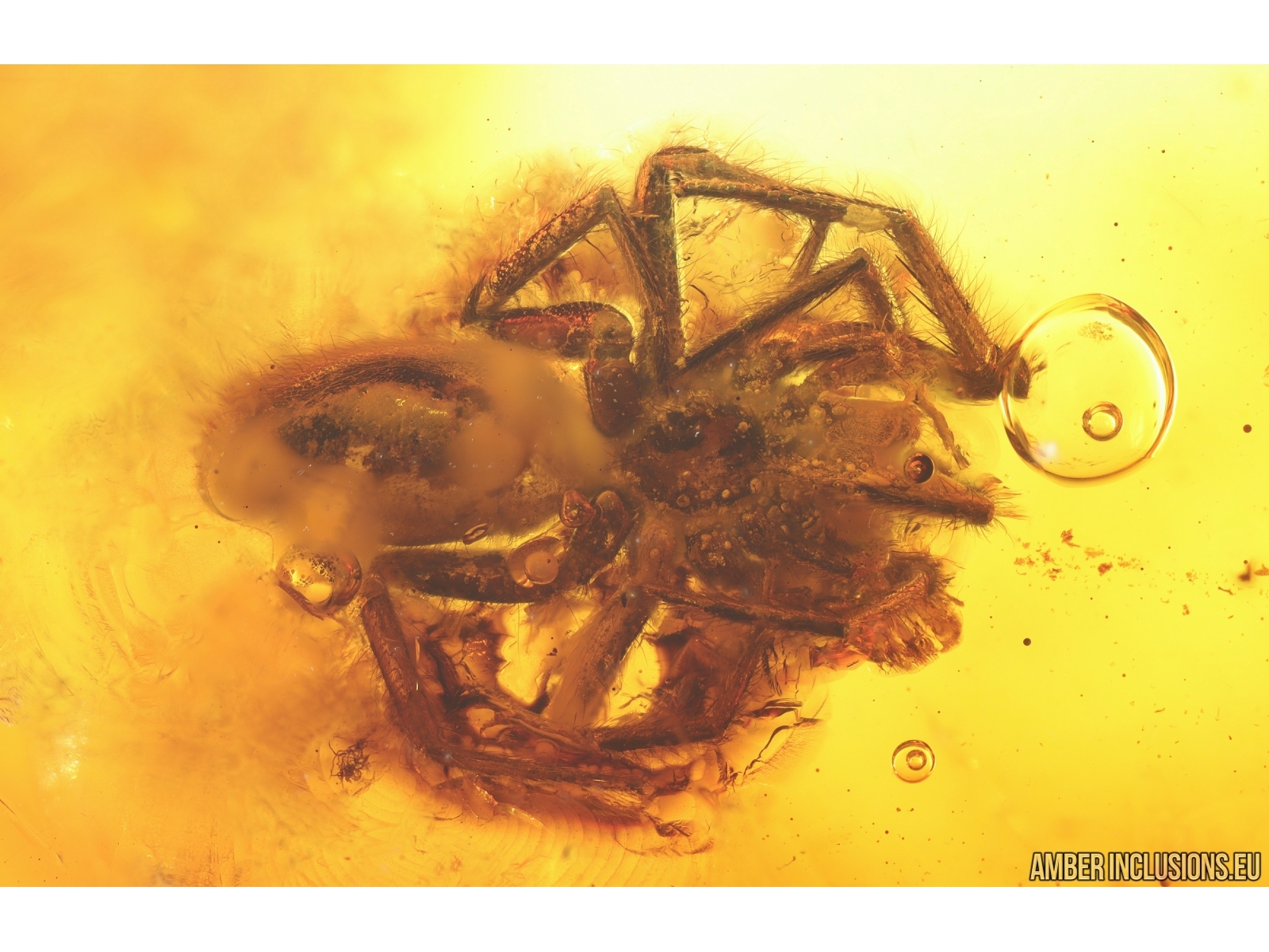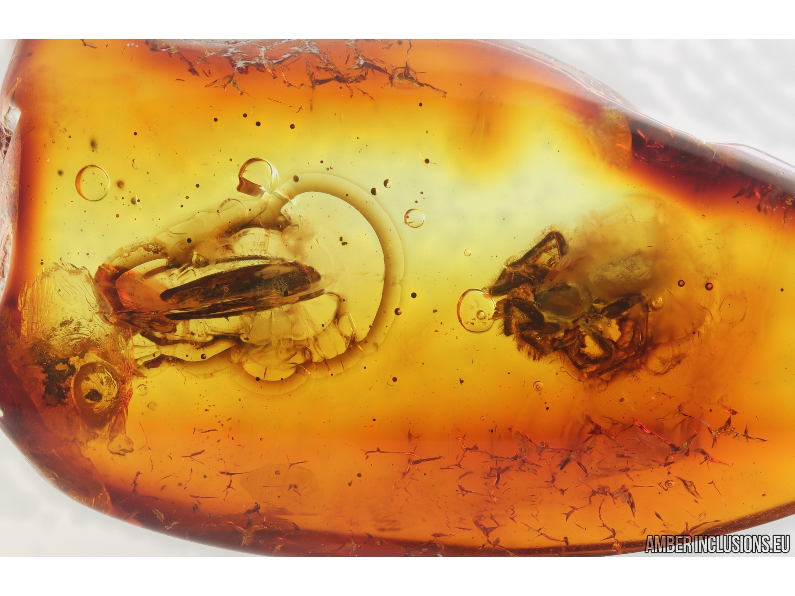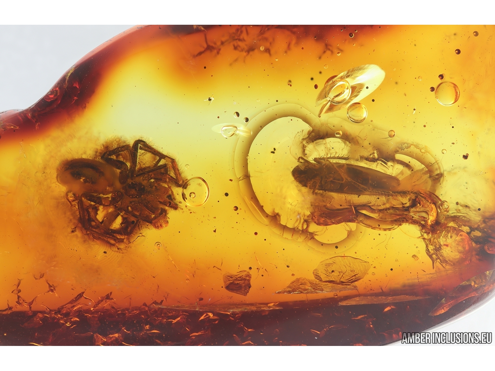 Baltic amber stone with fossil inclusions, trapped 34-56 million years ago -Spider Araneae, Leafhopper Cicadellidae and Waret bubbles.
