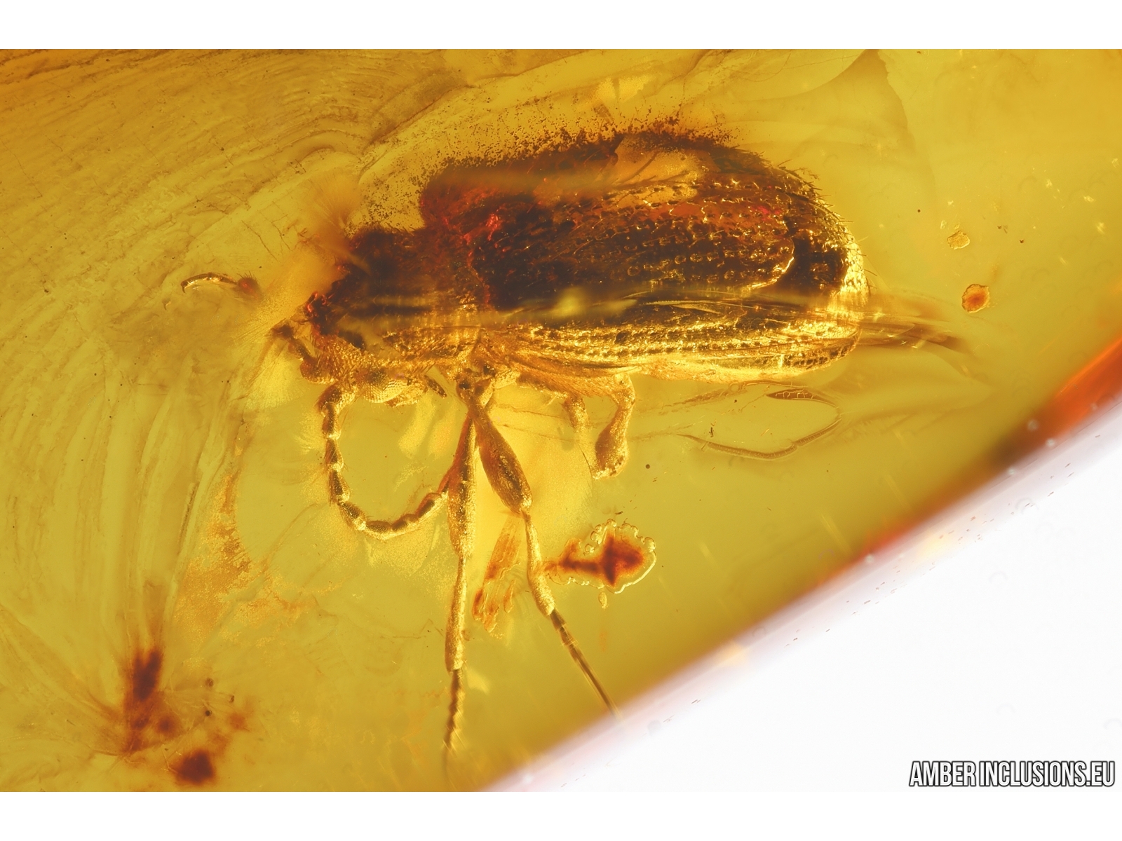 It weighs 0.5 g. Measurements of stone 22x8x4mm, length of beetle ~2mm.