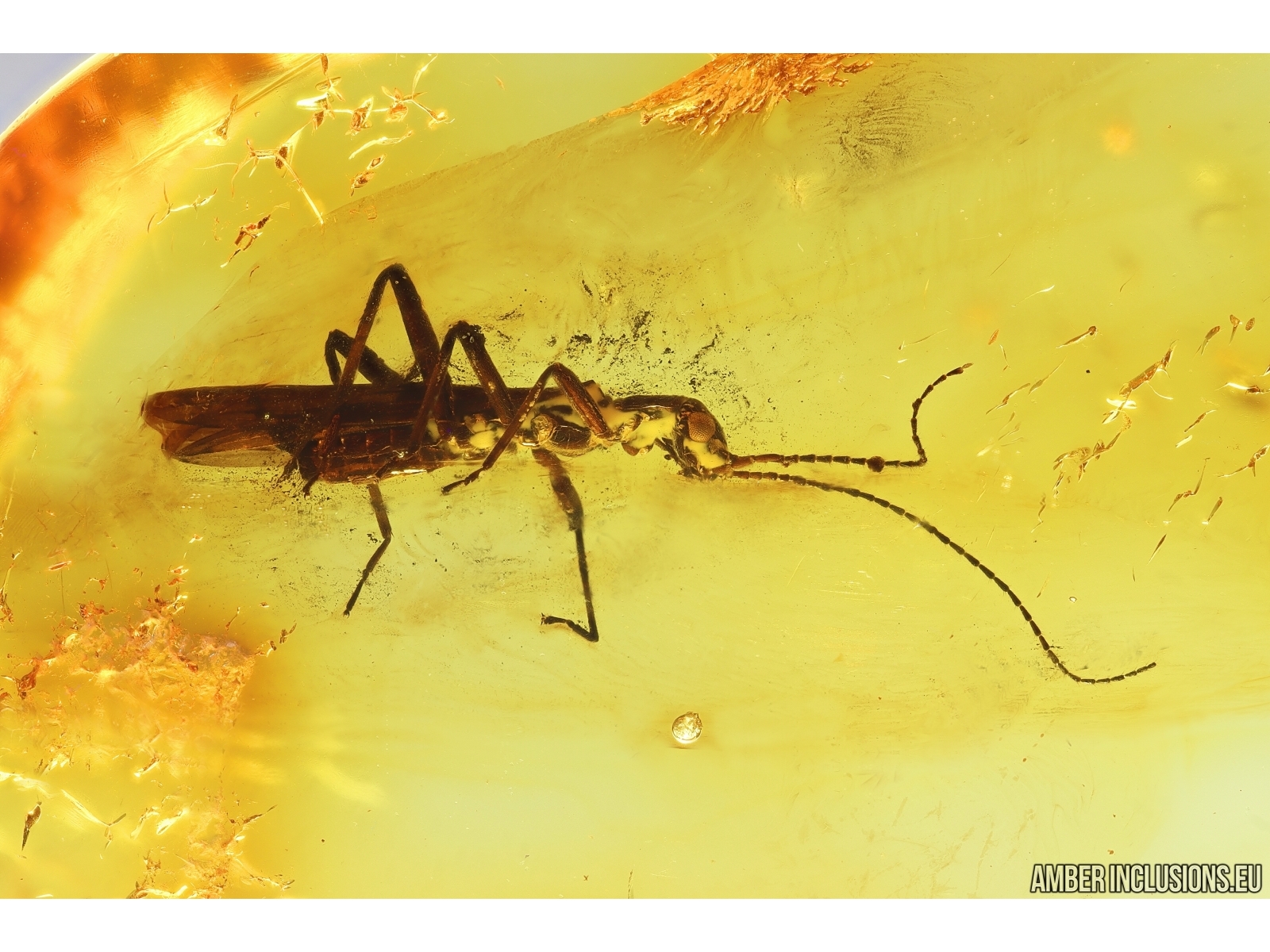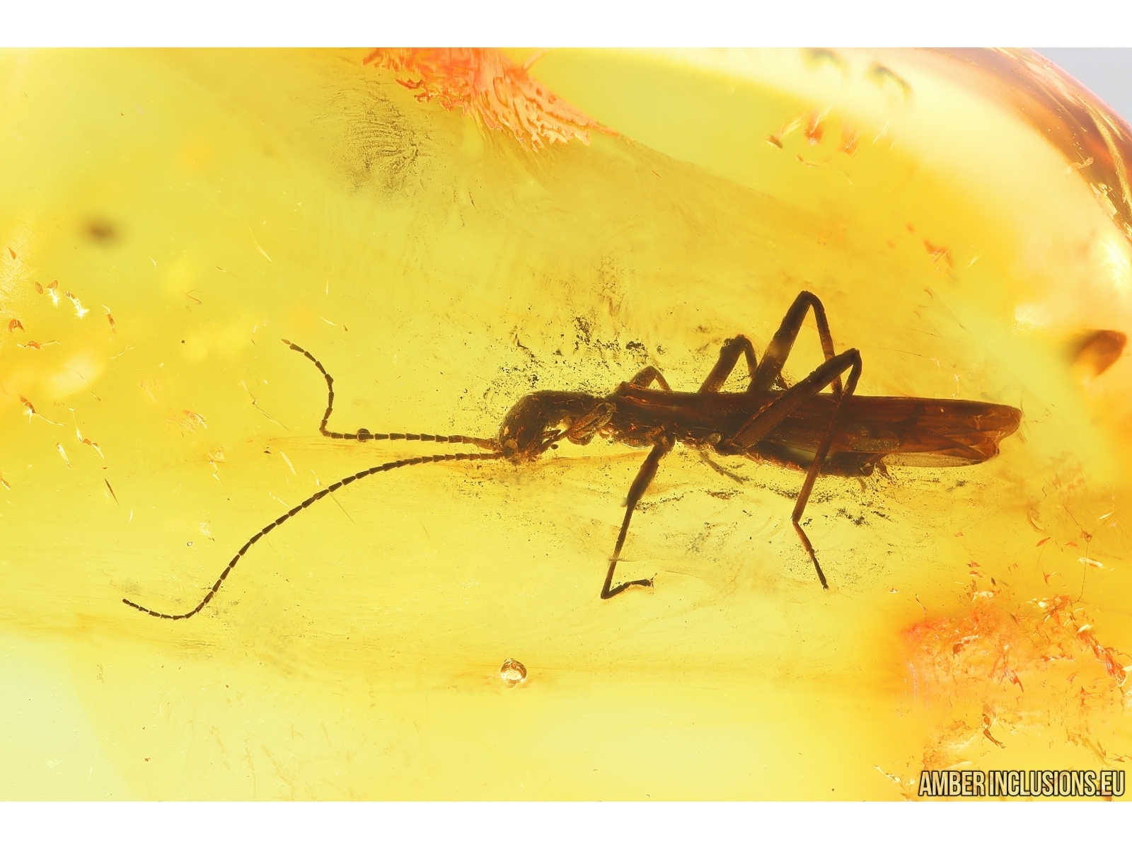 Baltic amber stone with fossil inclusion, trapped 34-56 million years ago - Stonefly, Plecoptera.
